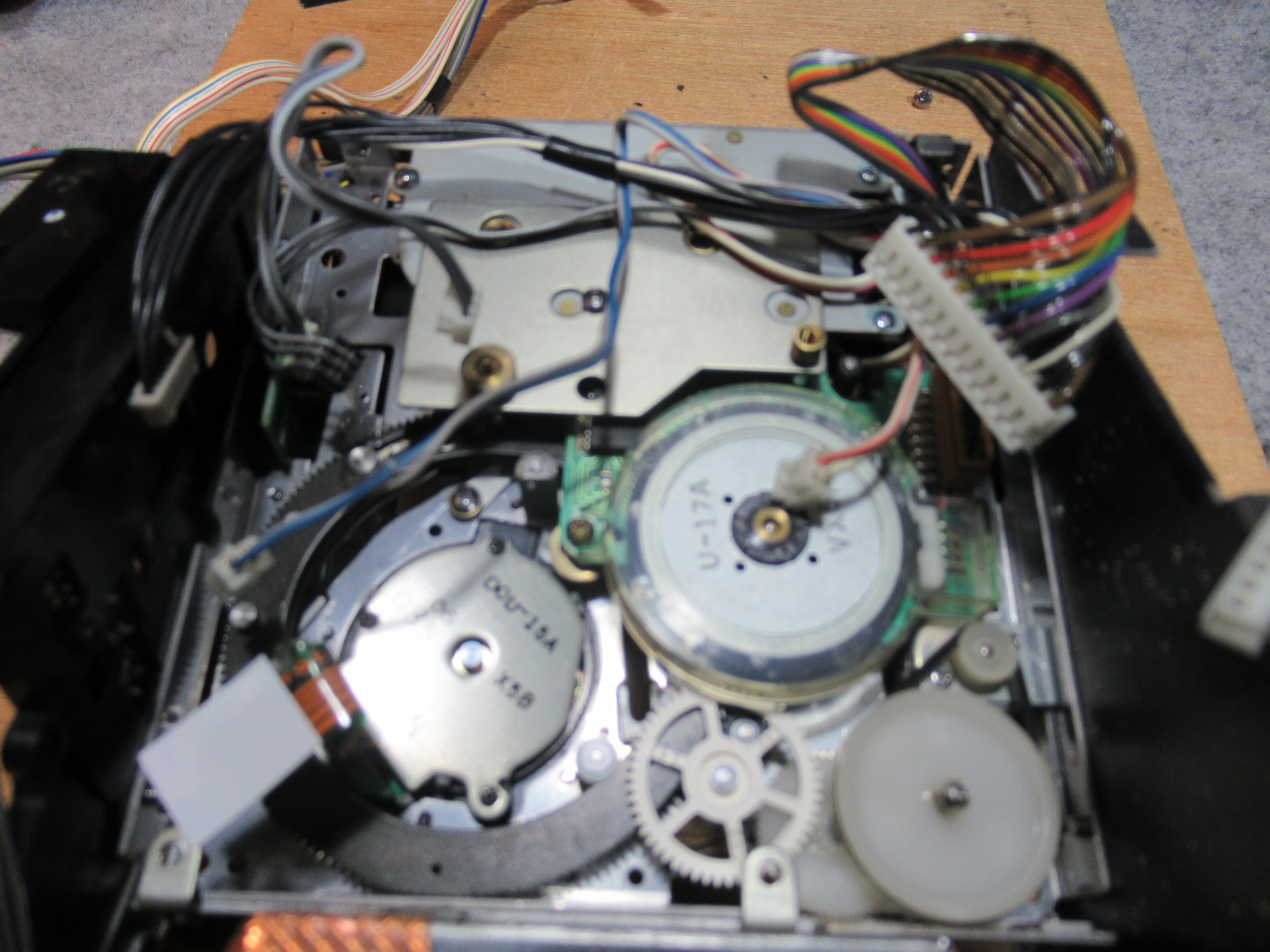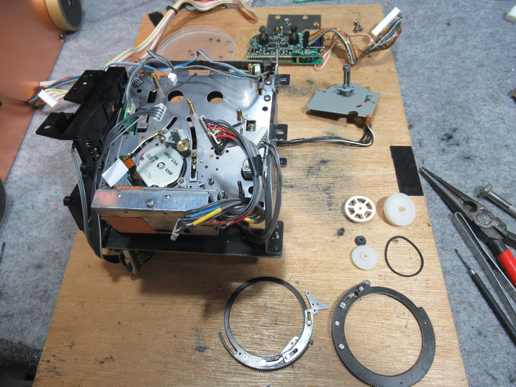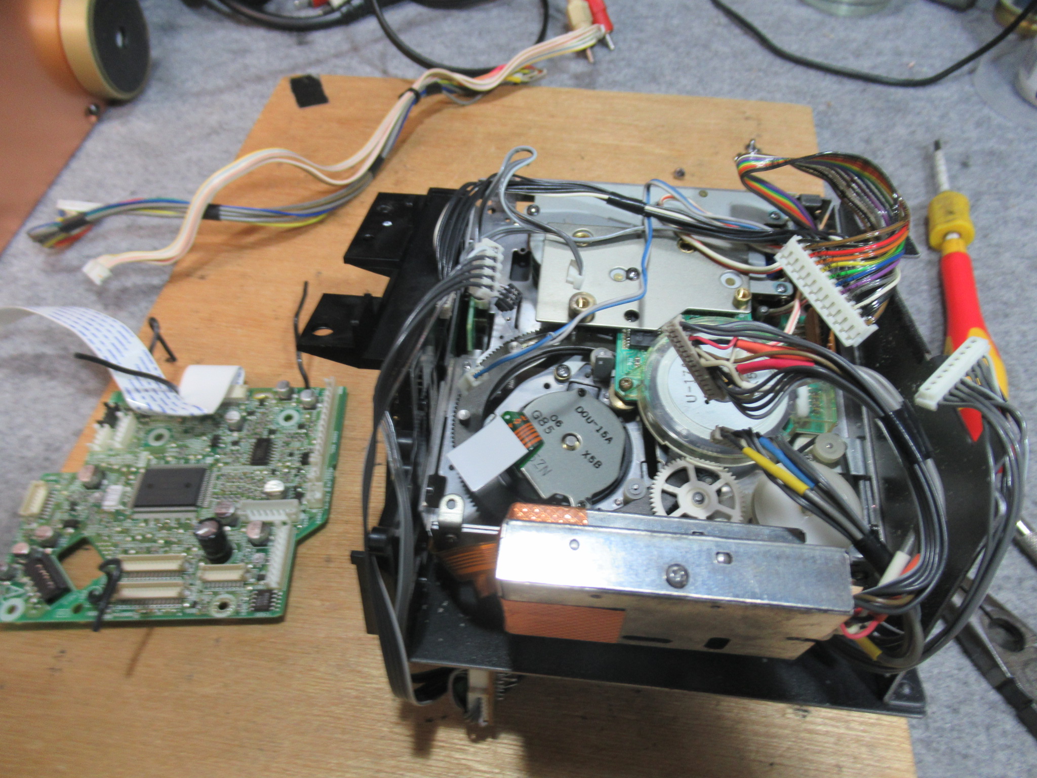 純正のスポンジ製ヘッドクリーナーは、回転ドラム表面を侵すことがありますので撤去します。すでに性状が変化してボロボロになっていました。