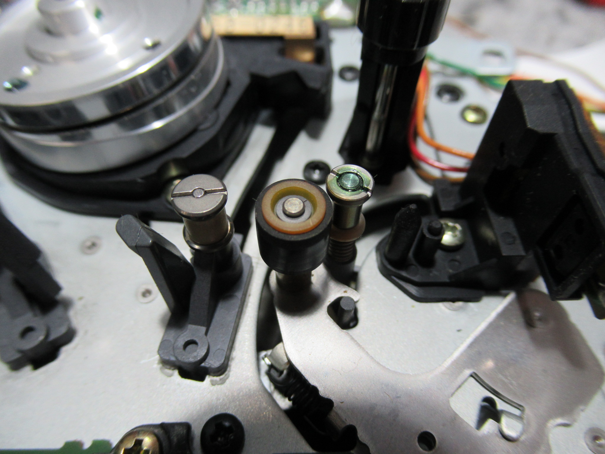 ピンチローラーを脱着して、表面を軽く研磨清掃します。