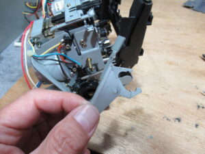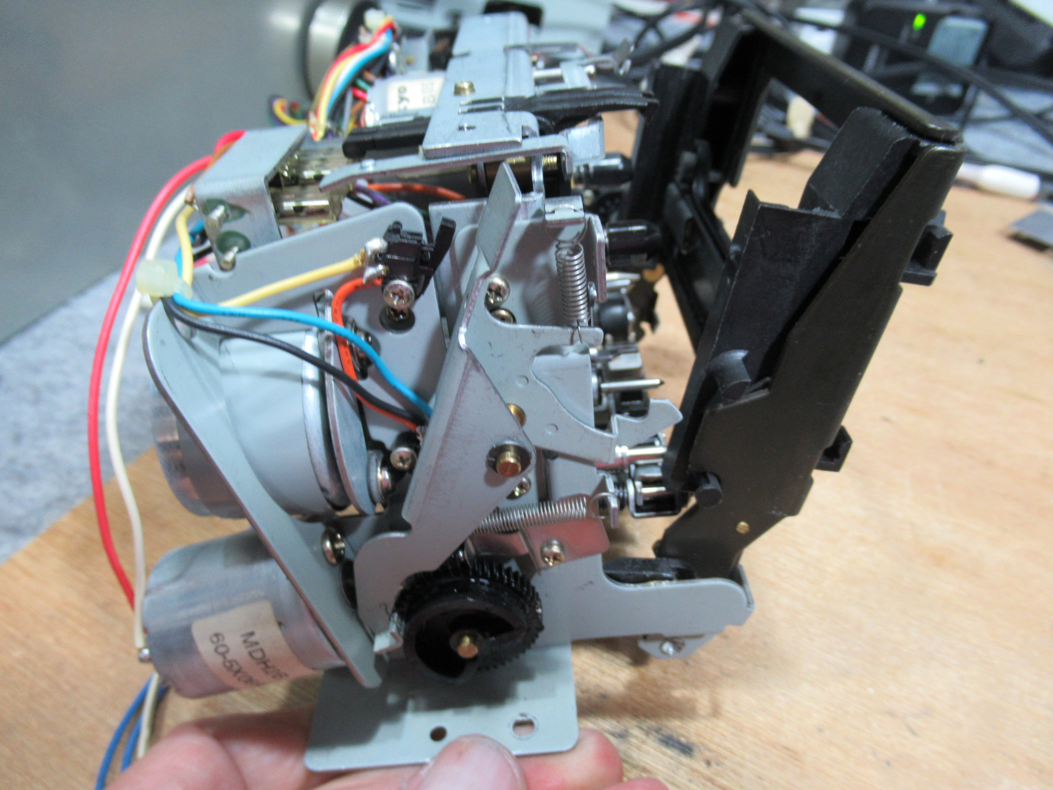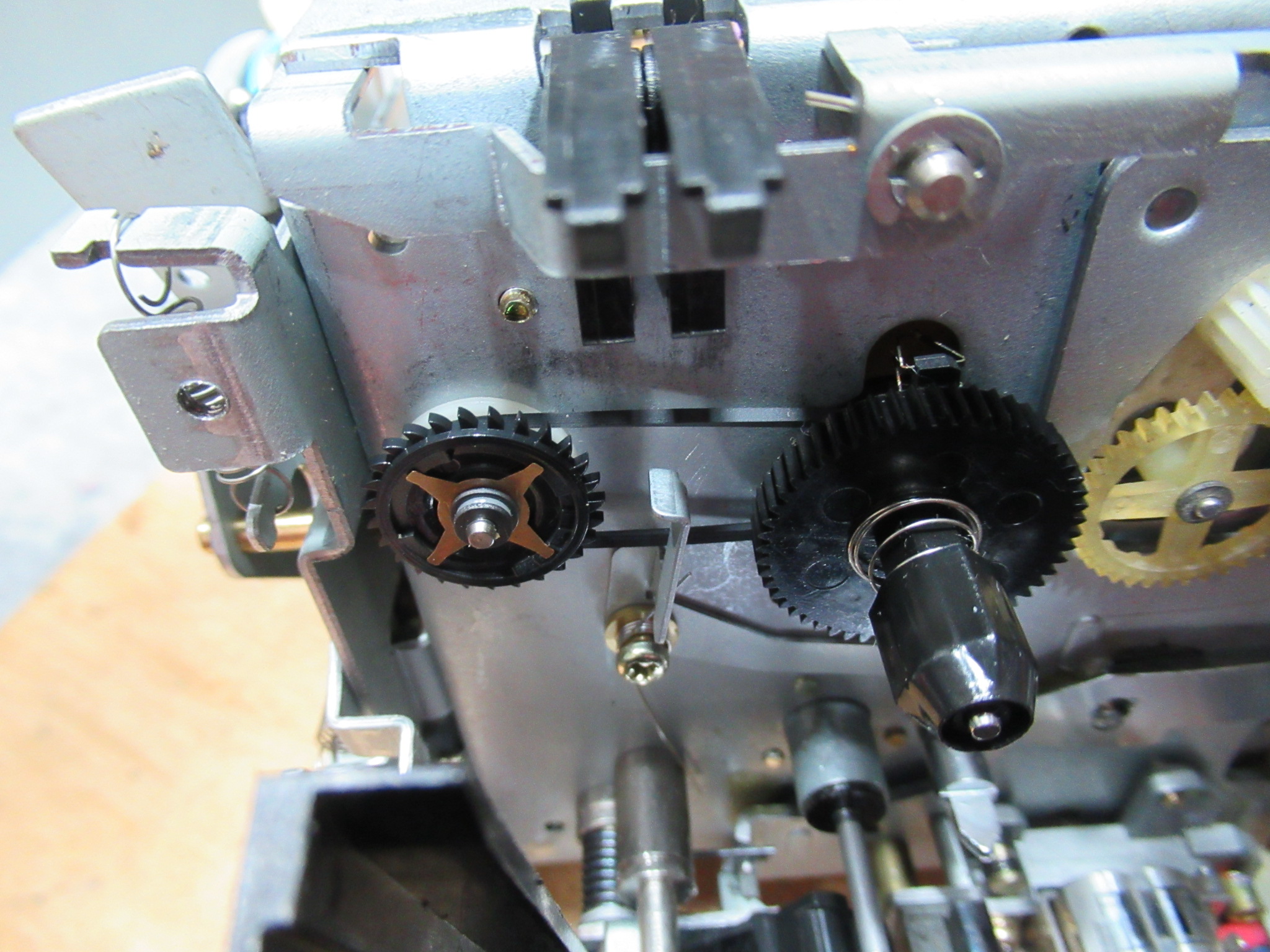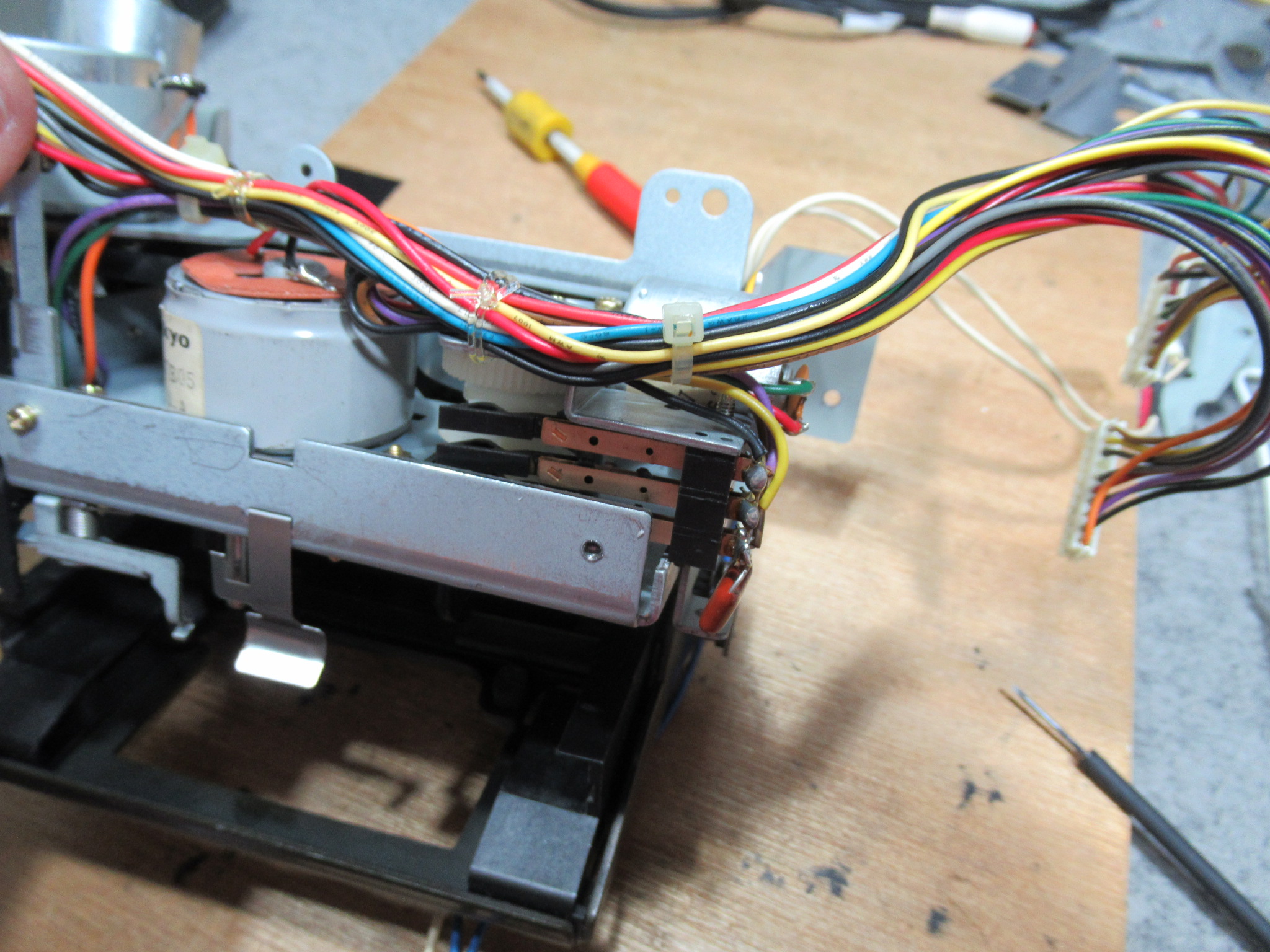 一旦メカを元に戻して動作確認を行いましたが、動作音が大きいのが気になりました。原因は、モーターが高速回転しているためでした。アンプに接続したところ、再生音は出力されますが、超早回しです。