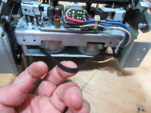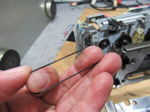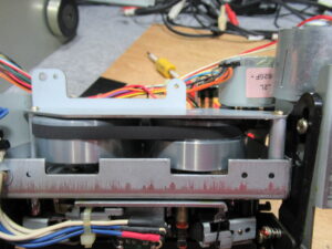 内部からモーター音が響いていますが、左側のキャプスタンが回っていません。ベルトが伸びていることが原因と考えられます。