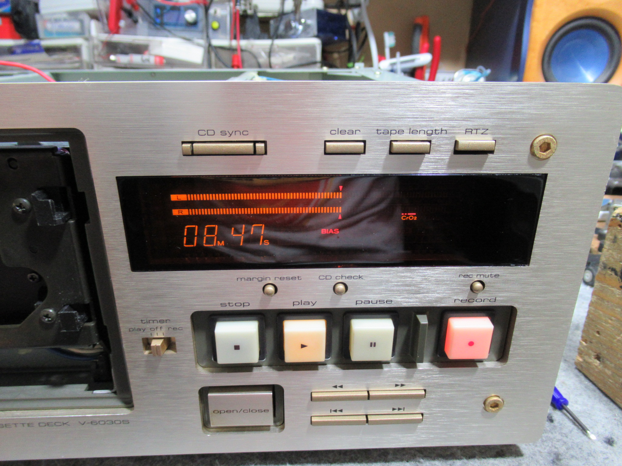 以前当店にDATデッキ3台の修理依頼をいただいたお客様から今回はカセットデッキの修理依頼をいただきました。 TEACのV-6030Sです。1994年頃発売、当時70,000円で販売されていましたから中 …