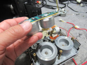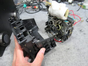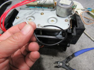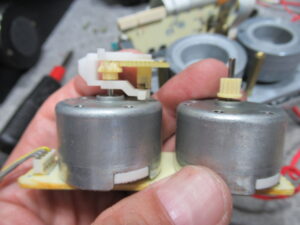 モーターユニットを取り外して破損しているピニオンギヤを代替品と交換します。もう片方も併せて交換します。
