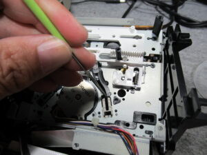 キャプスタンモーターユニットを取り外し、ガイドレールをヤスリで削って修正します。