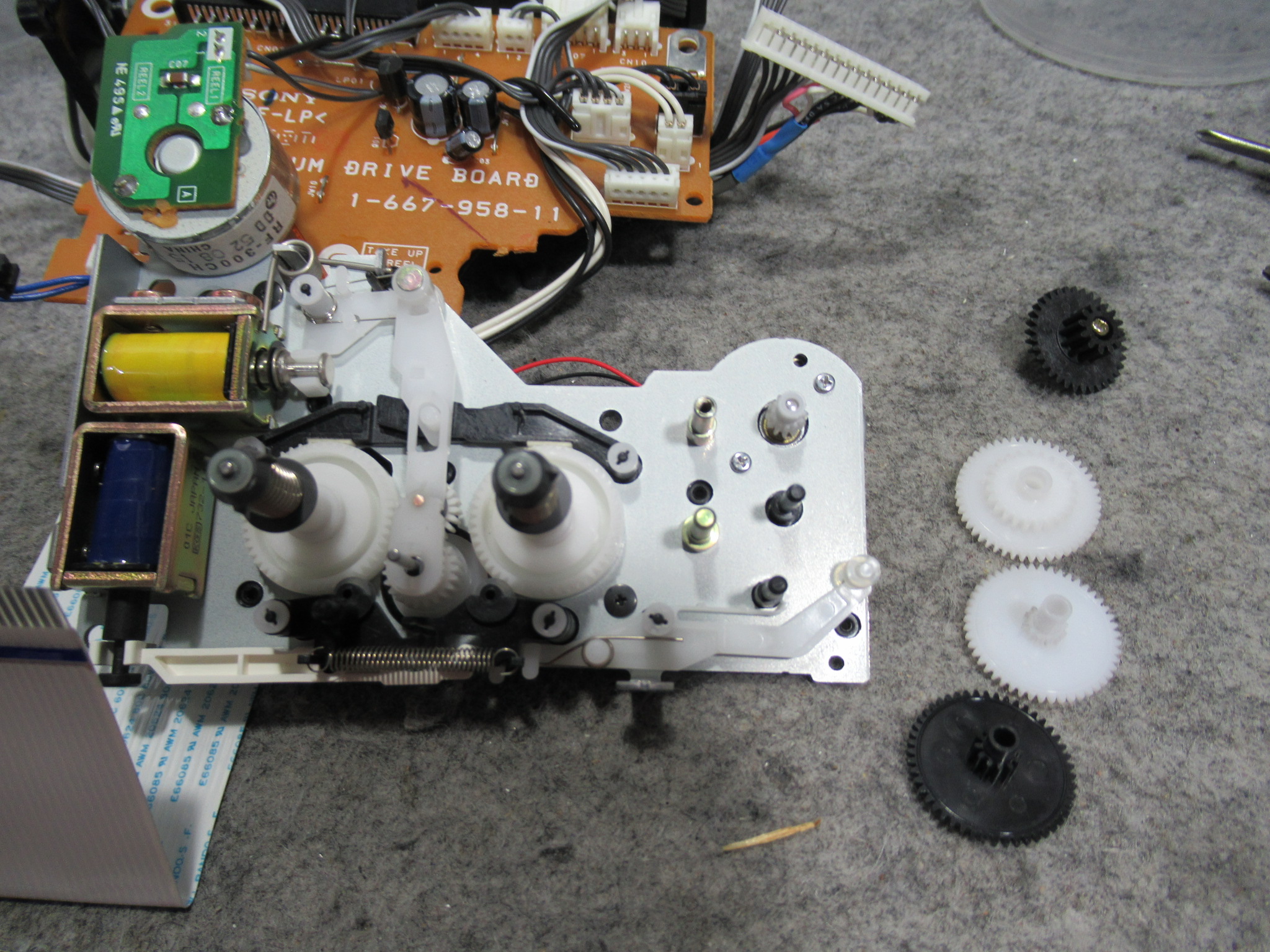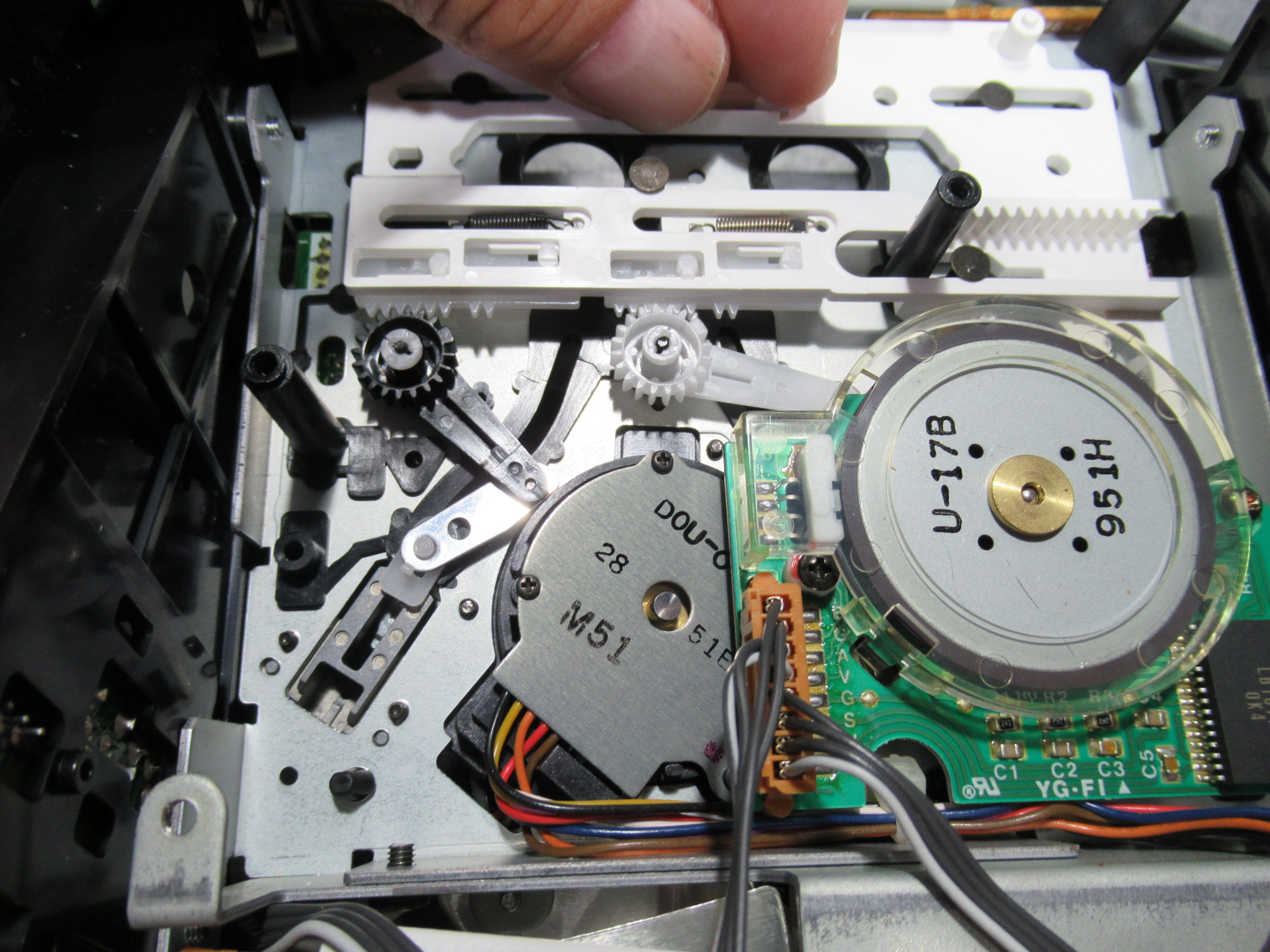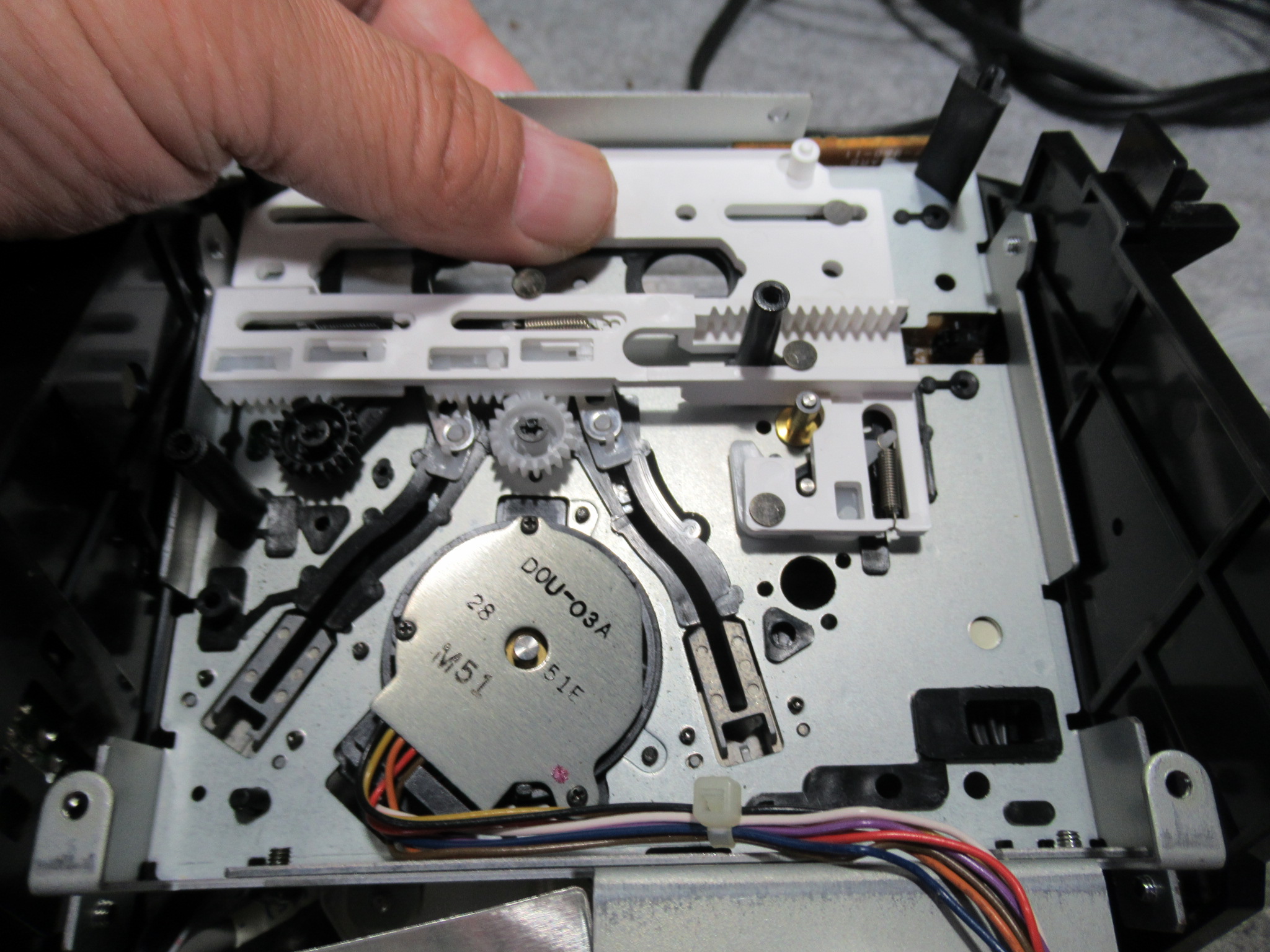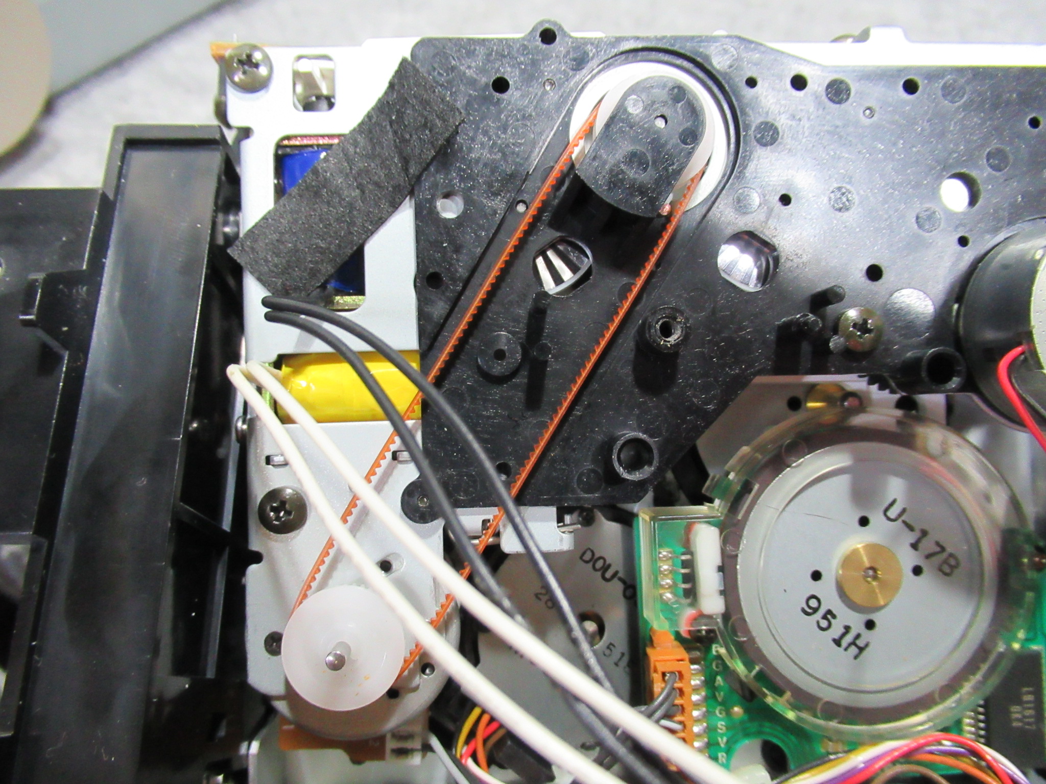キャプスタンモーターユニットを取り外し、ガイドレールをヤスリで削って修正します。