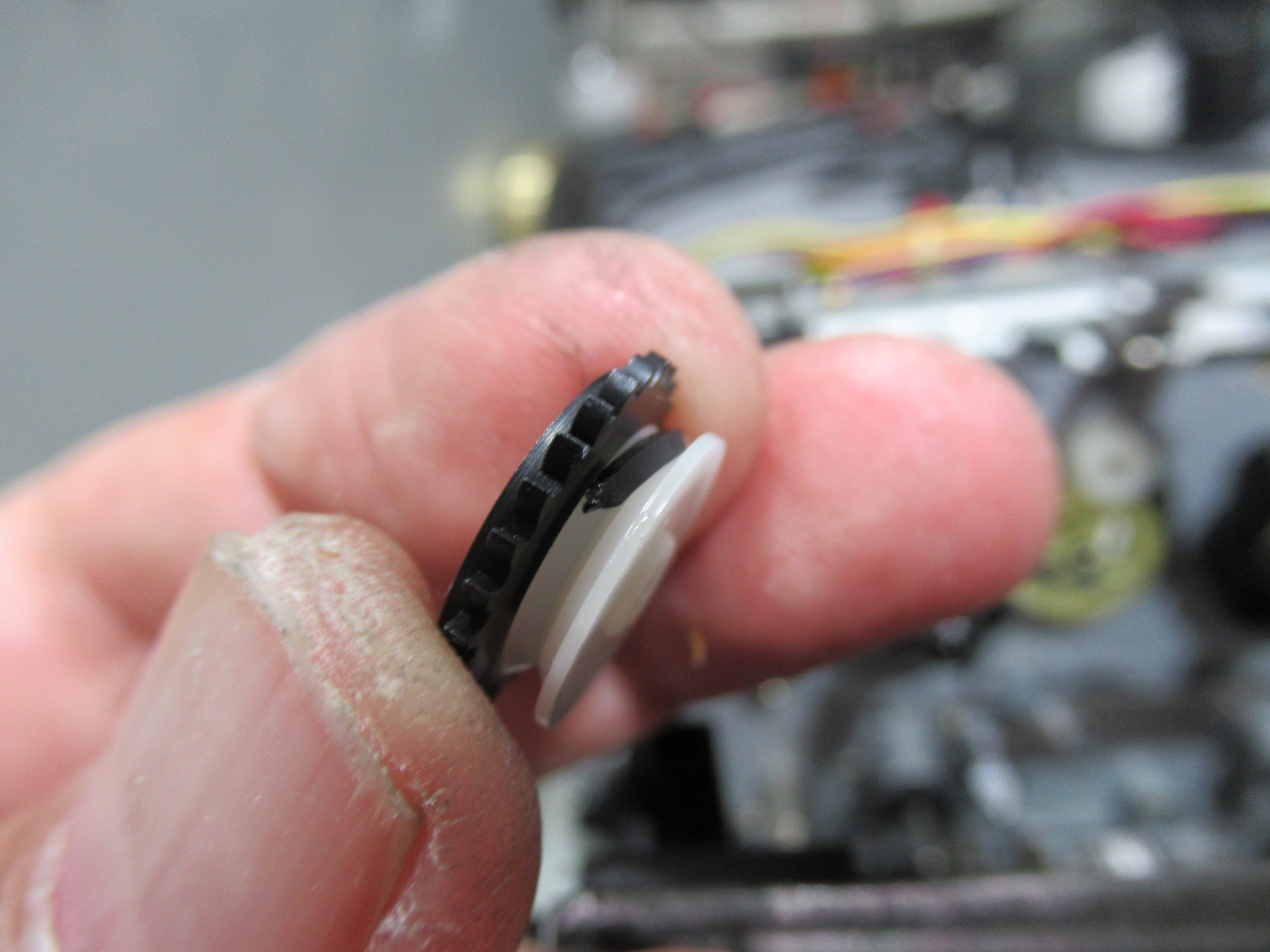 バックテンションを付加するプーリーに溶けたベルトが付着していますので、除去清掃します。