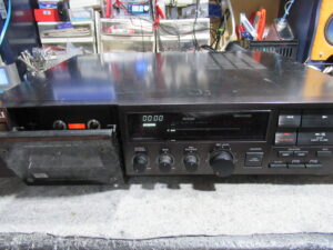 AKAIのGX-73です。 長期間使用しない間に故障していたということです。 電源を入れると、2・3秒でトレイが開きますが、すぐに閉じて、そのままモーター音が延々と鳴り響きます。 カバーとフロントパネ …