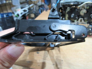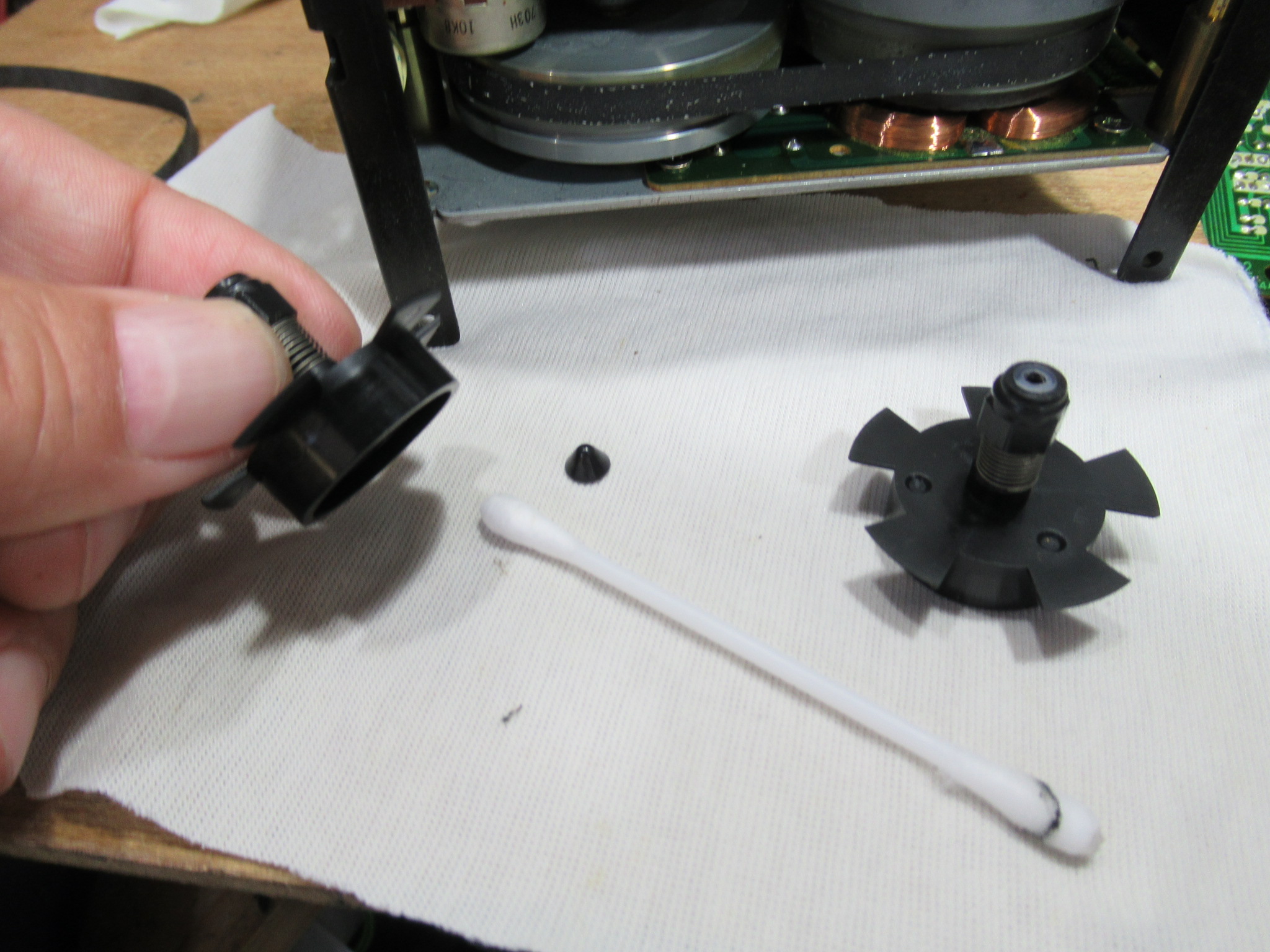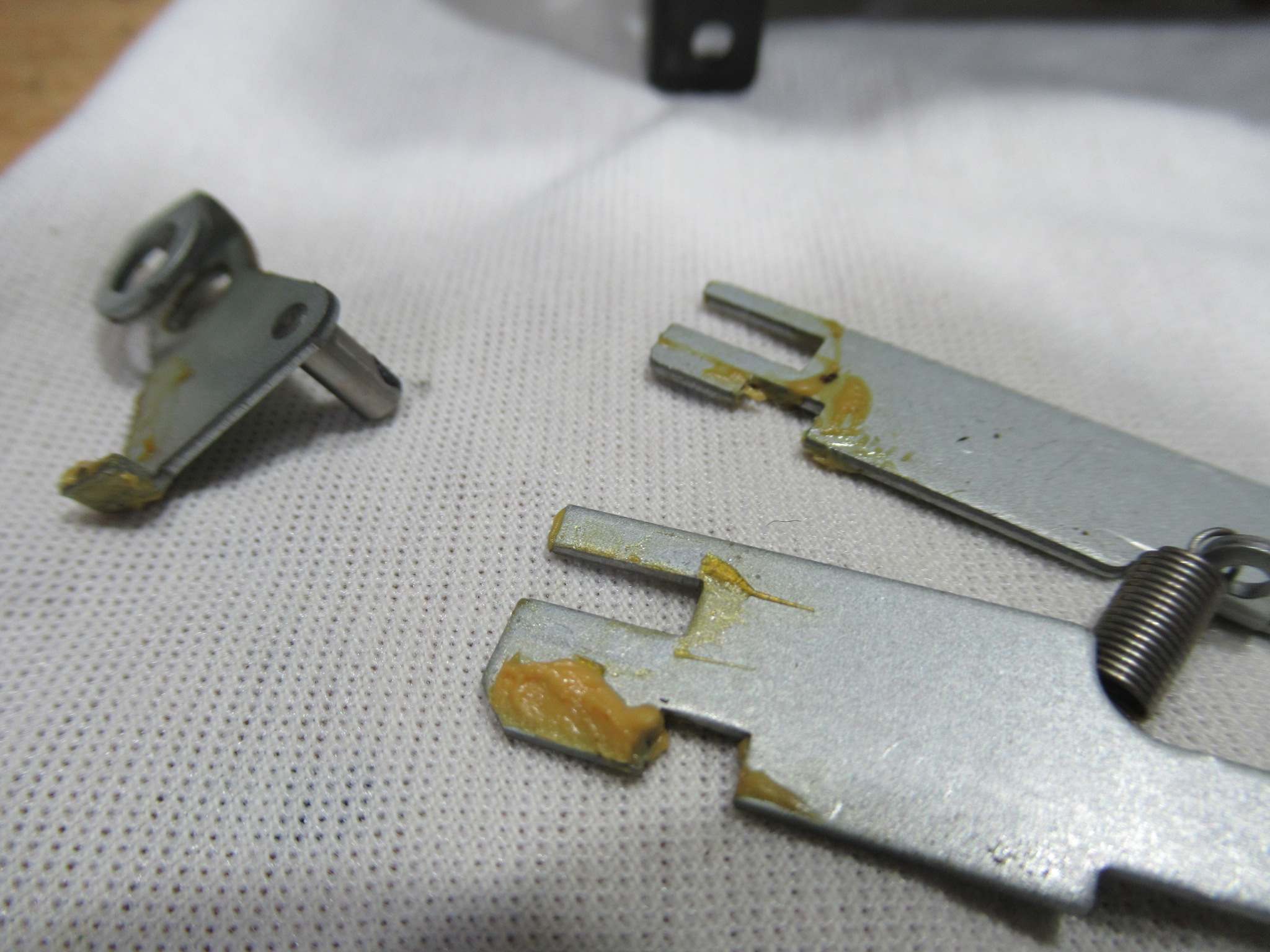 ヘッド周りの可動パーツを分解します。古いグリスが固まりかけていますので、除去清掃し再グリスします。