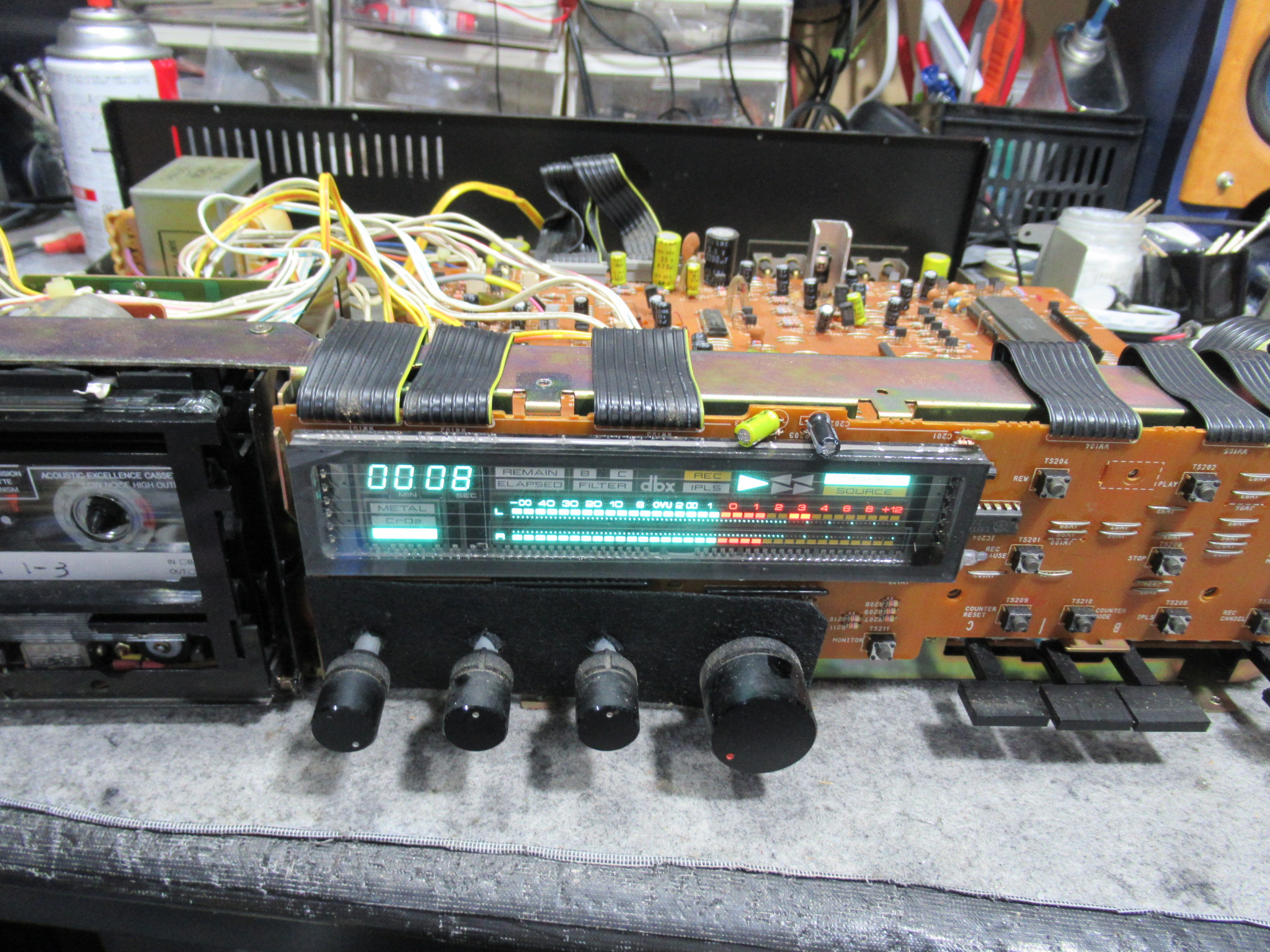 今日は時間が取れたので、かなり前に入手したジャンク品のGX-73の修理を行いました。 いつも通りメカのメンテナンスを終えて、調整を行おうとしたところ、 RCHが入力・出力共に不良です。最初はREC-V …