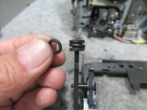 カセットホルダーを取り外し、ロケットオープンの原因となった劣化したダンパーゴムを交換します。