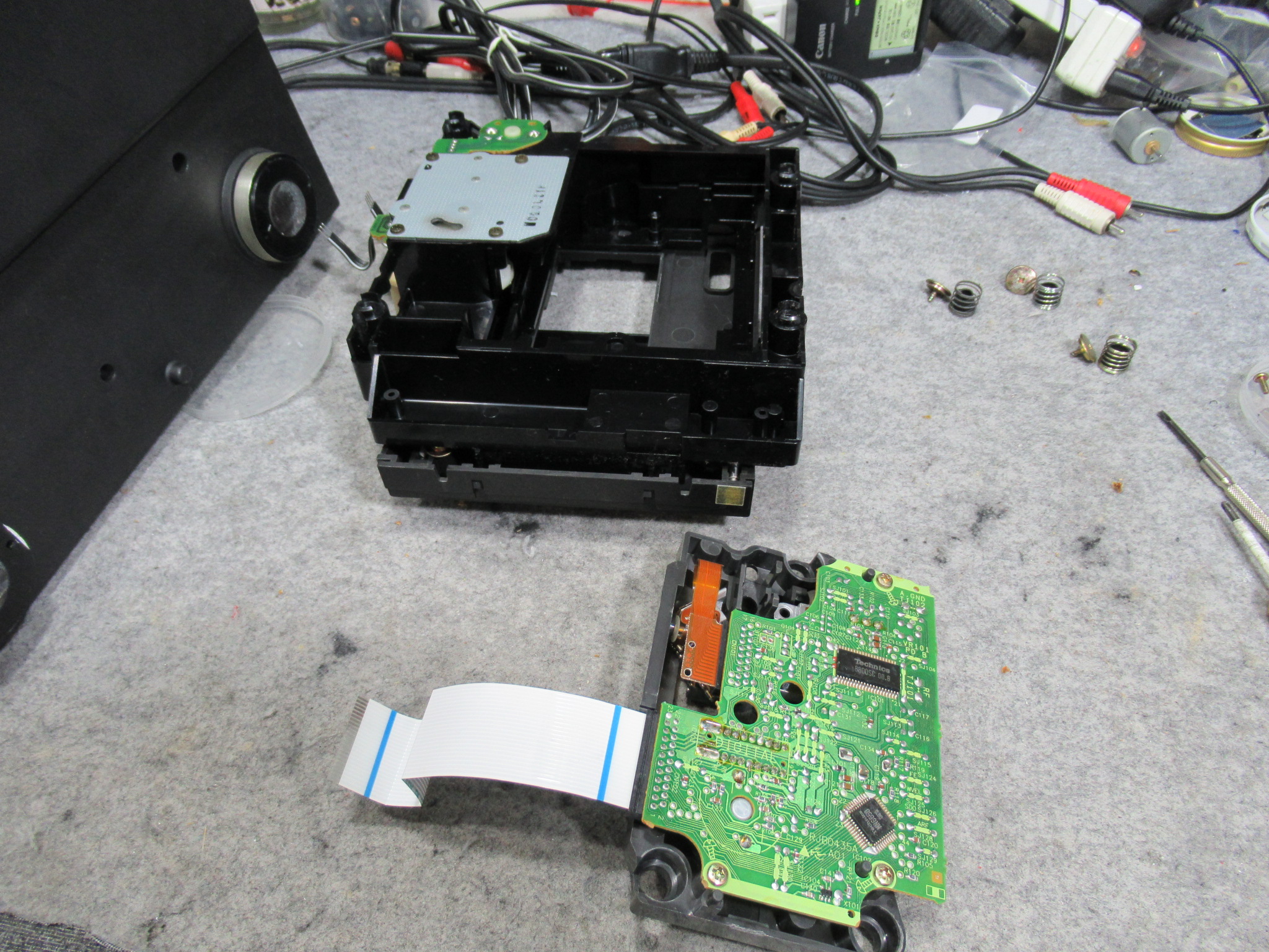 ディスクを読み込むことができません。当店は、CDデッキは専門外ですが、この機種のサーボ基板の電解コンデンサー交換は対応可能です。
