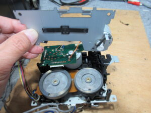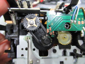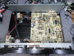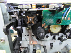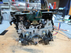 A&D製3ヘッドデュアルキャプスタンカセットデッキ、GX-Z6100の修理依頼をいただきました。 これまで修理歴は無いという機体ですが、現在は再生不可状態です。 カバーを開けました。キャプスタ …