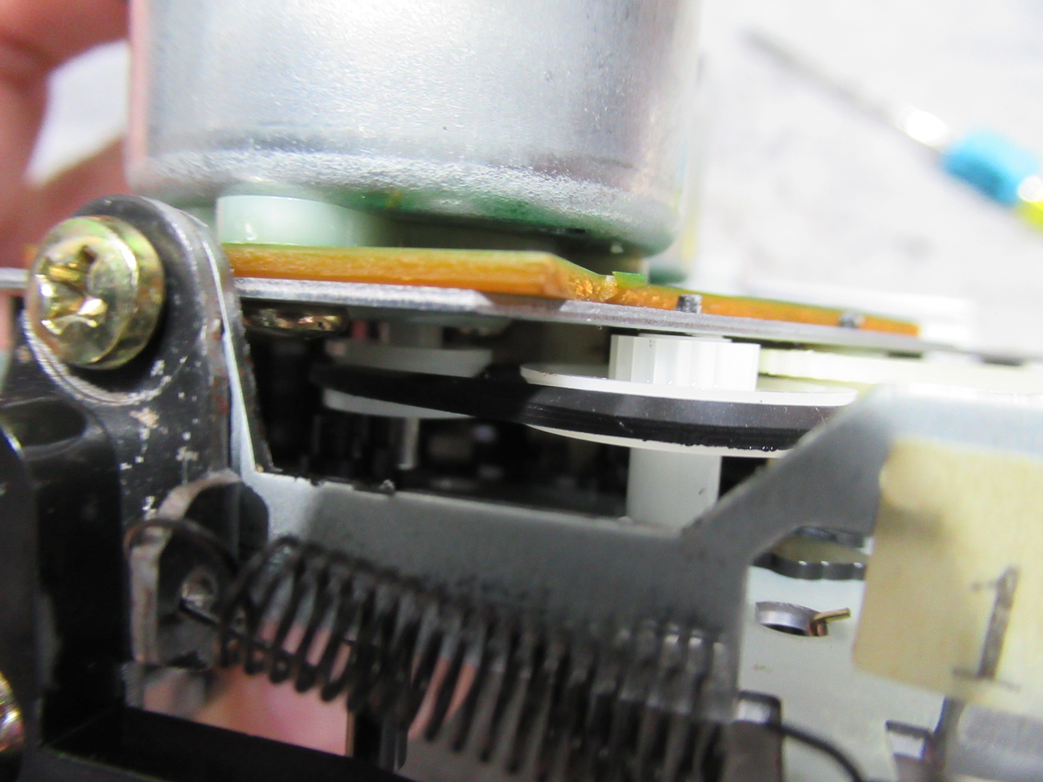 モーターユニットを組み付け、仮掛けしてあったベルトをモータープーリーに掛け直します。