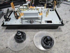 今回は、VHSビデオのリワインダーの修理です。 (当店ではビデオデッキの修理は行っておりません。) テープをセットすると電源が入ります。しかし、操作ボタンを押してもモーター音が鳴るものの動作しません。 …