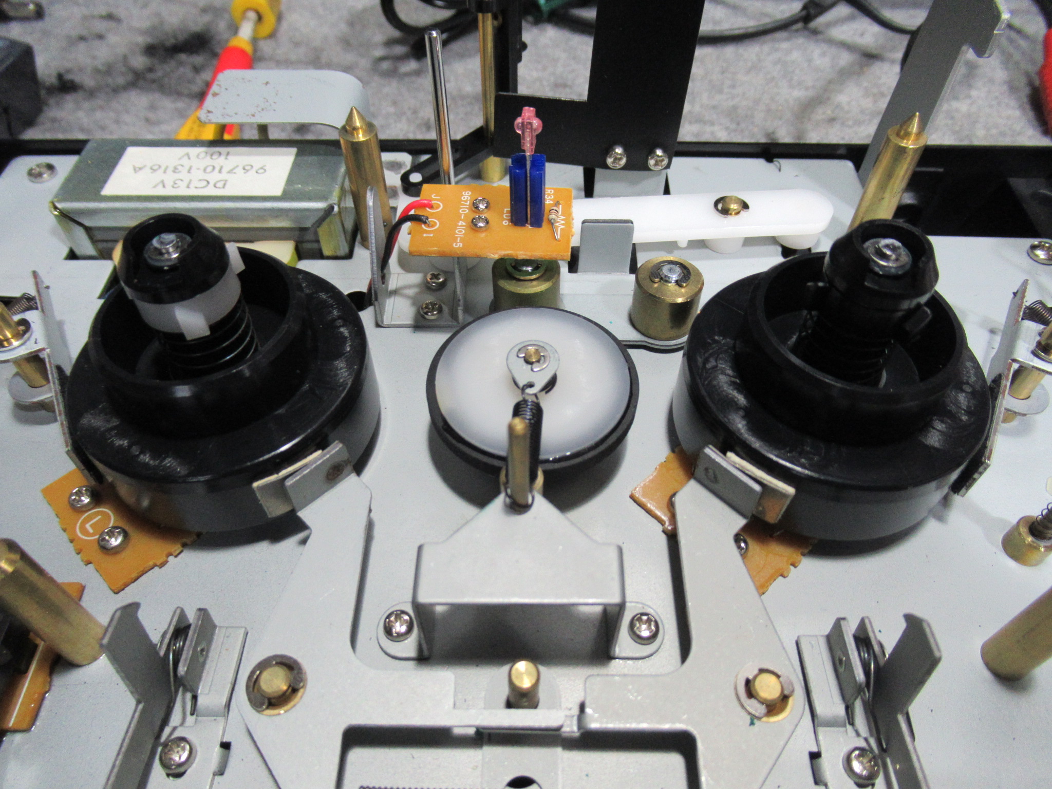 愛機TC-R6で、お気に入りの音楽を楽しもうとしたところ、 再生ボタンを押してもリールが回転しません。数日前までは正常だったのですが・・・ 早送り巻き戻しは正常です。原因は、キャプスタンが回転していな …