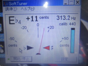 315Hzの信号が記録されたテープを再生し、速度を確認します。少し遅くなっていますが、調整はできません。ただし、聴感では分からない程度です。