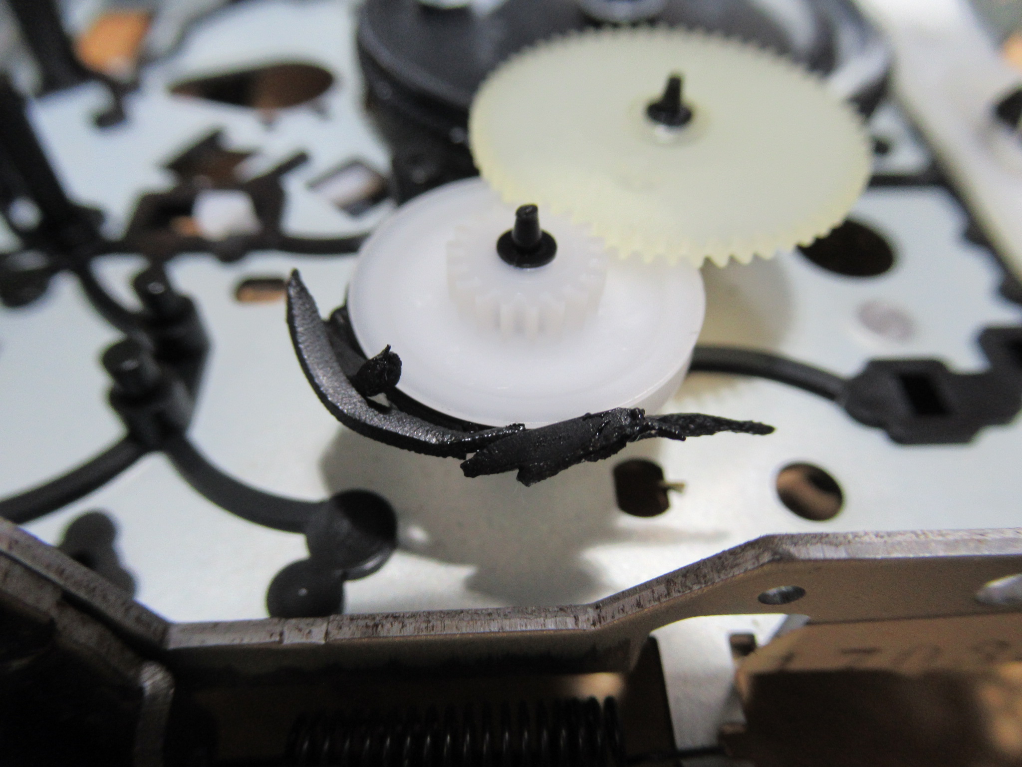 溶けたベルトが付着しています。