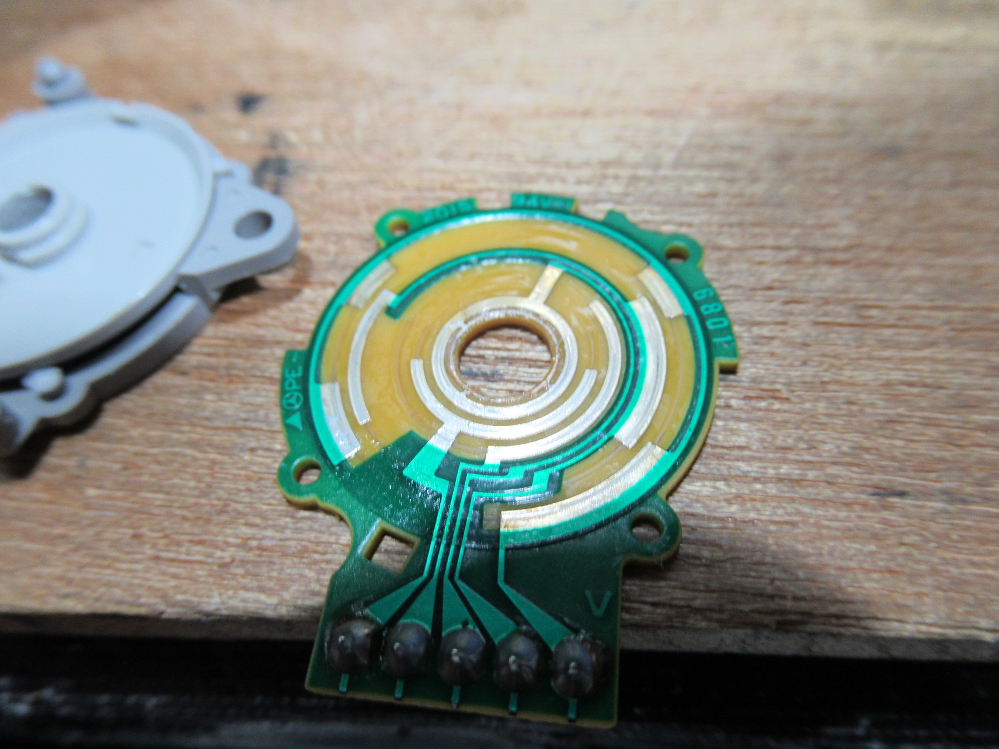 ロータリーエンコーダーを分解し、接点を研磨清掃します。