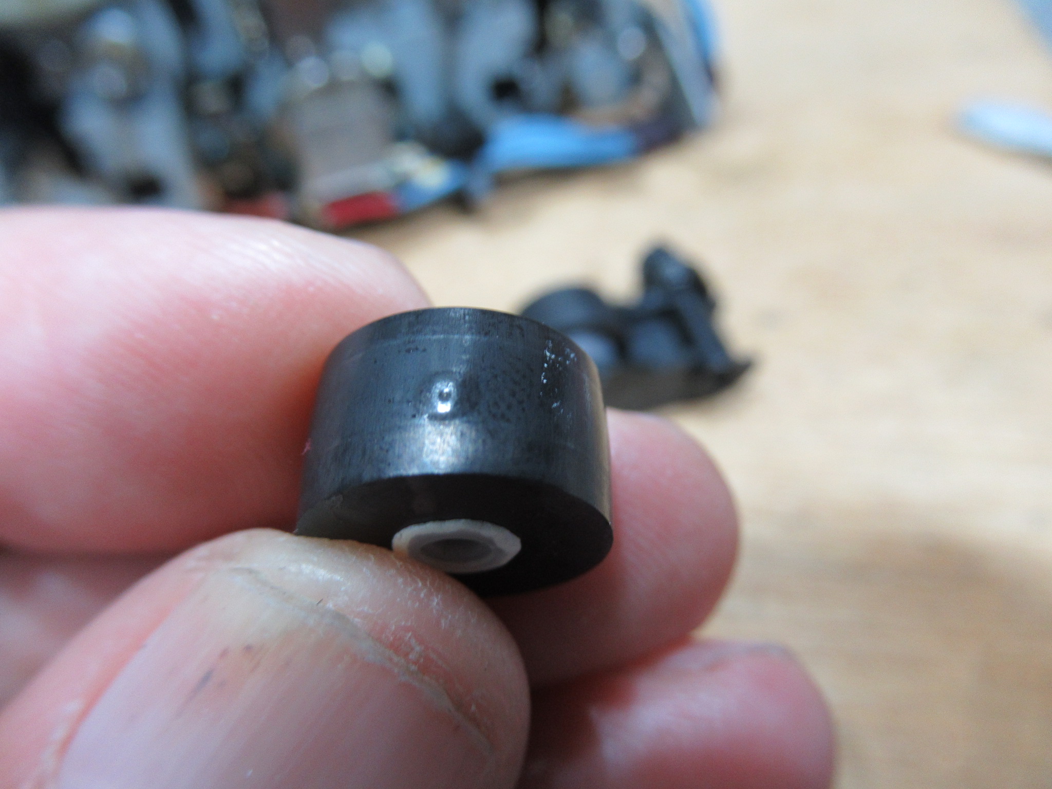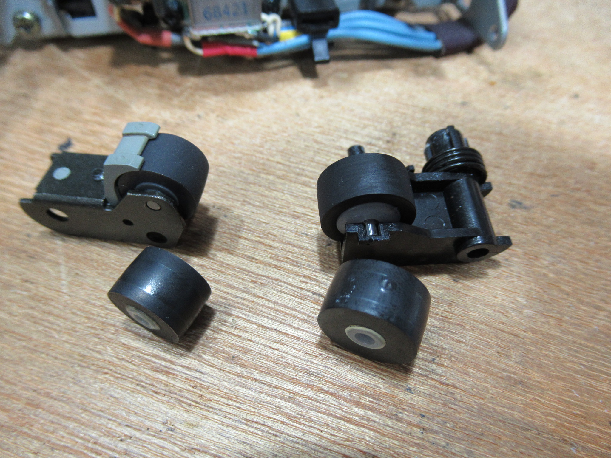 ピンチローラーは、おそらく一度は交換されているようですが、一部が膨らんでいます。いずれにしても全体的に劣化していますので交換します。