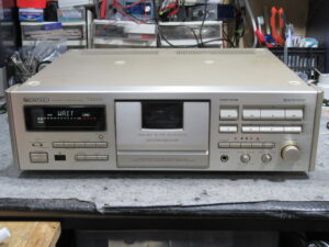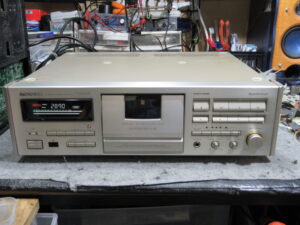 PIONEERの3ヘッドデュアルキャプスタンカセットデッキ、T-1000Sの修理依頼をいただきました。 長期間使用されていなかった機器ということです。「電源を入れると異音がする。」「カセット蓋が上手く …
