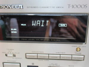PIONEERの3ヘッドデュアルキャプスタンカセットデッキ、T-1000Sの修理です。 数年間不使用だったということで、不動状態です。 表示がWAITのままです。 カバーを開けます。 キャプスタンベル …