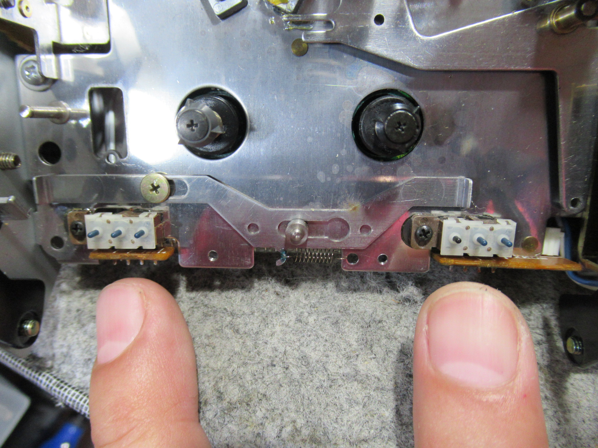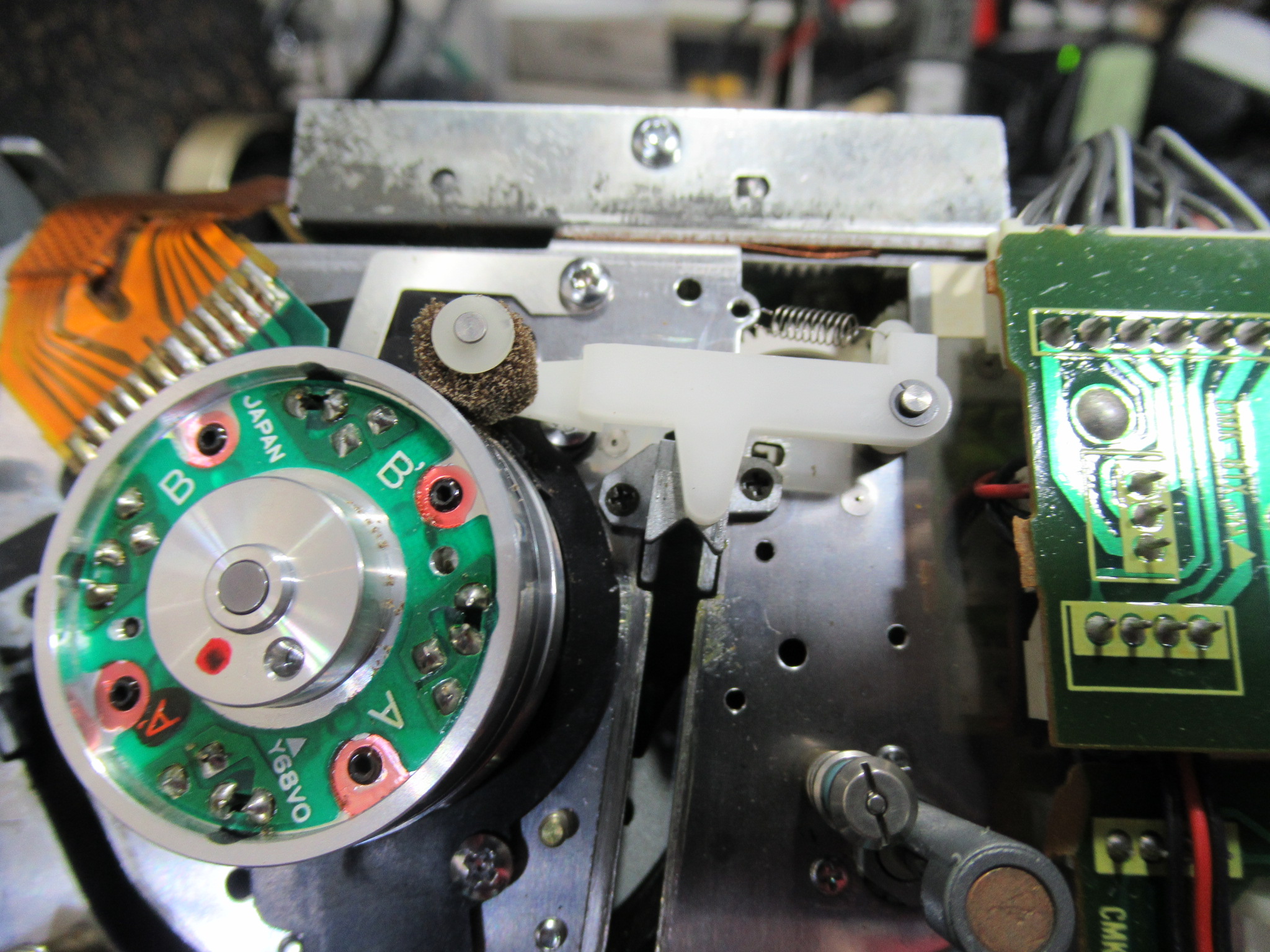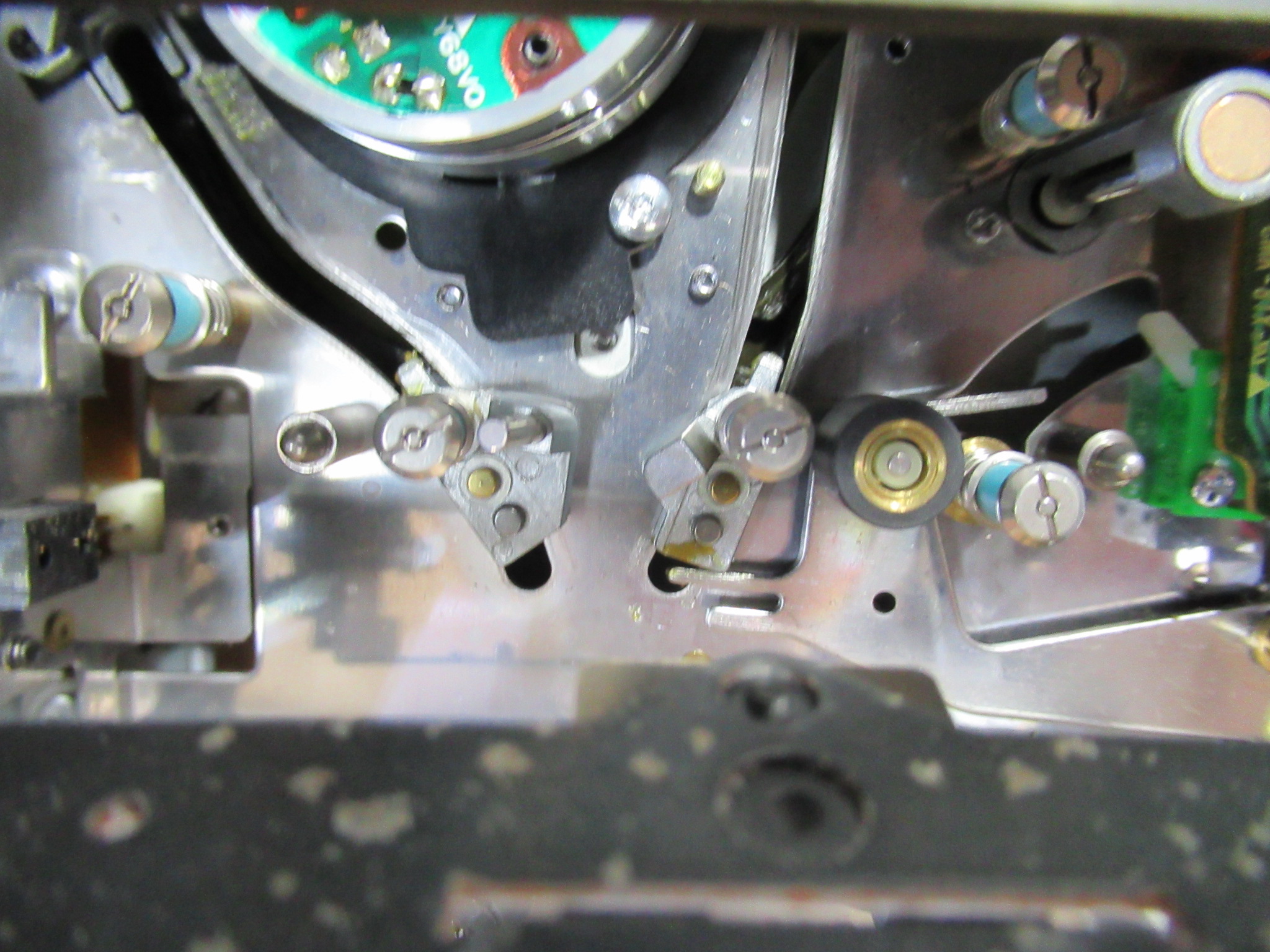 メカを目視点検すると、可動式のテープガイドが途中停止していることがわかりました。