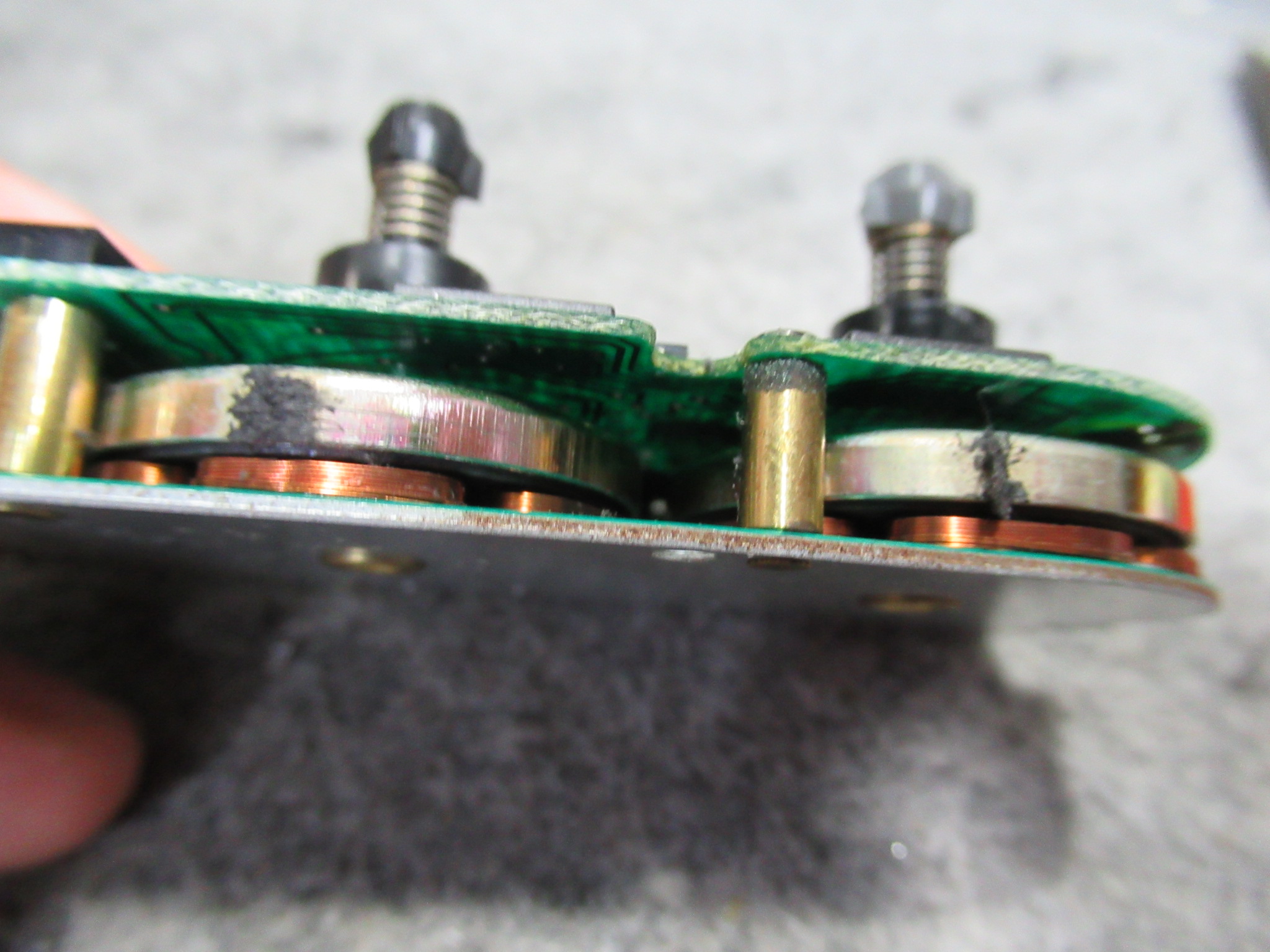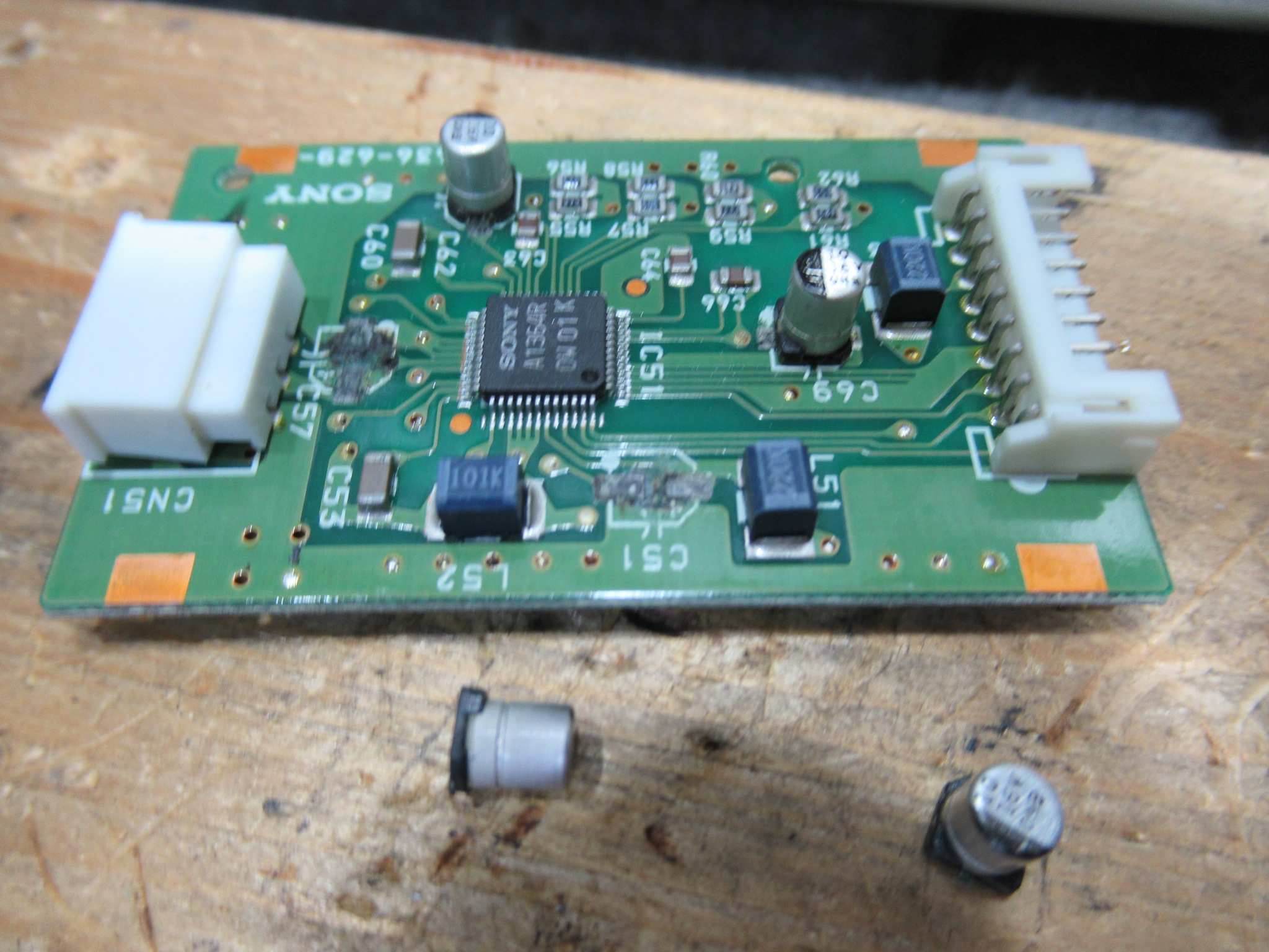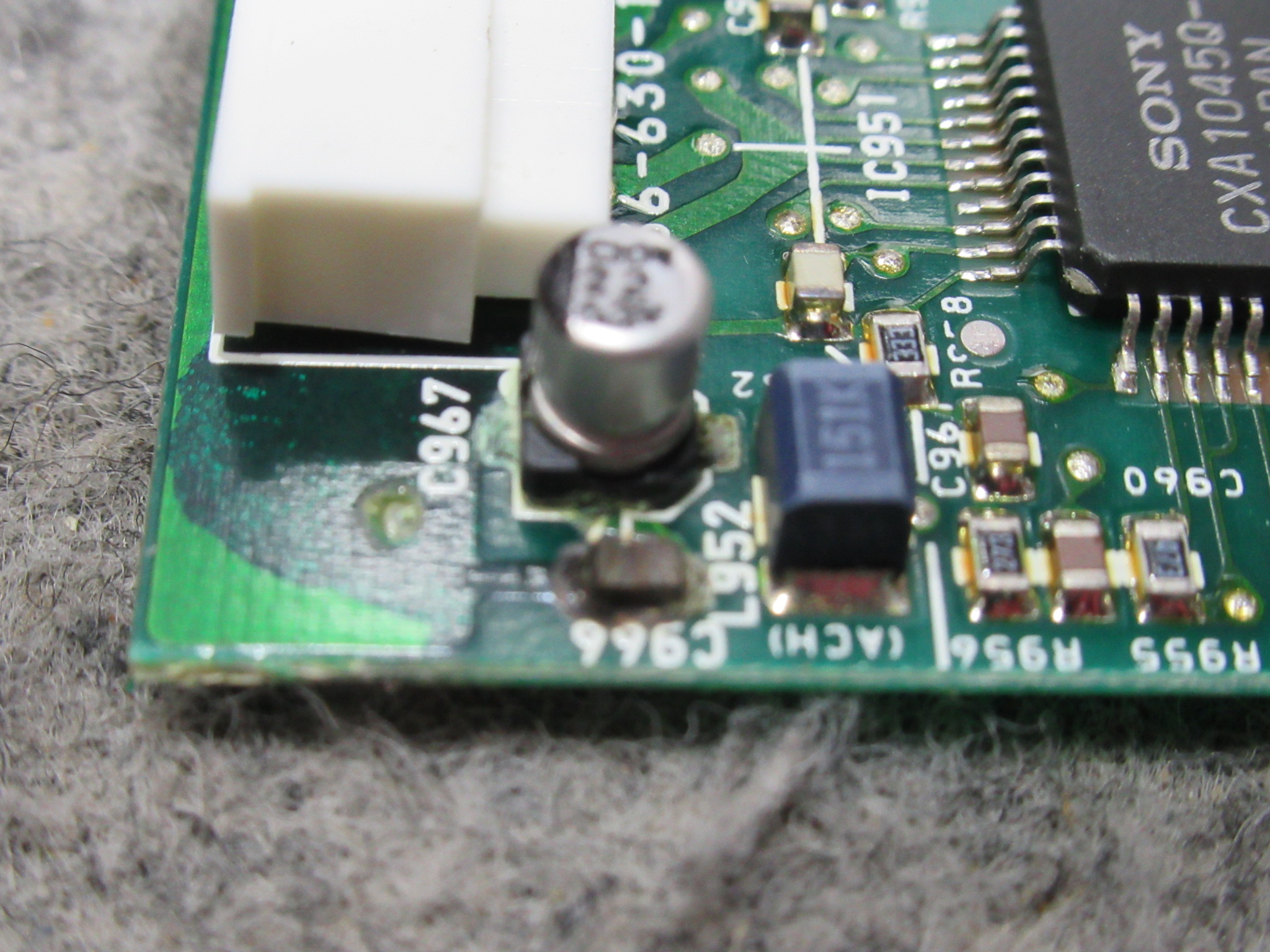 こちらは「再生または録音」用です。電解コンデンサーの端子が液漏れで腐食しています。