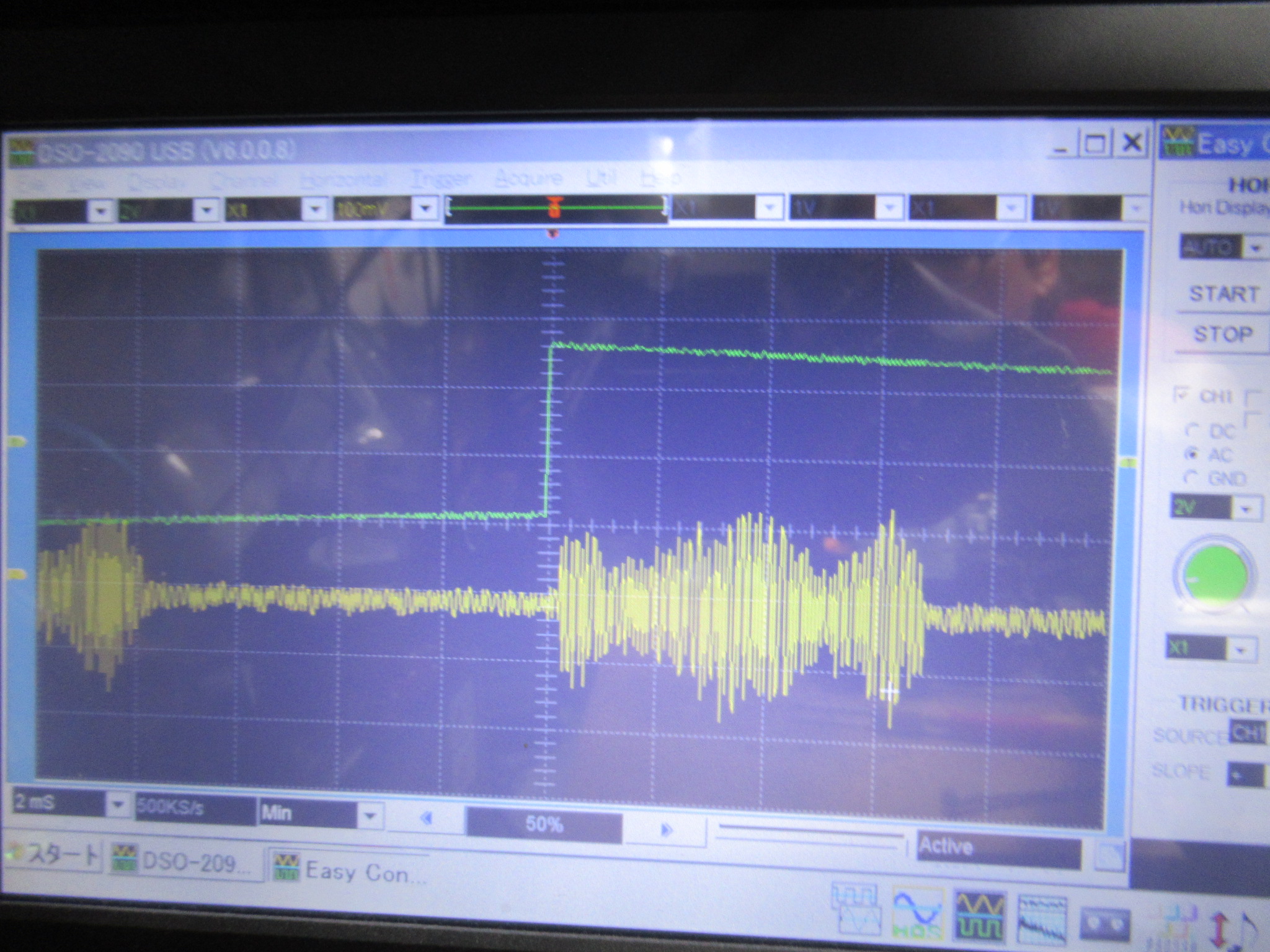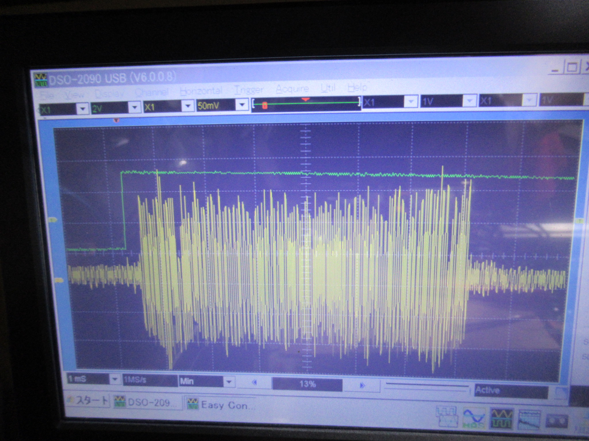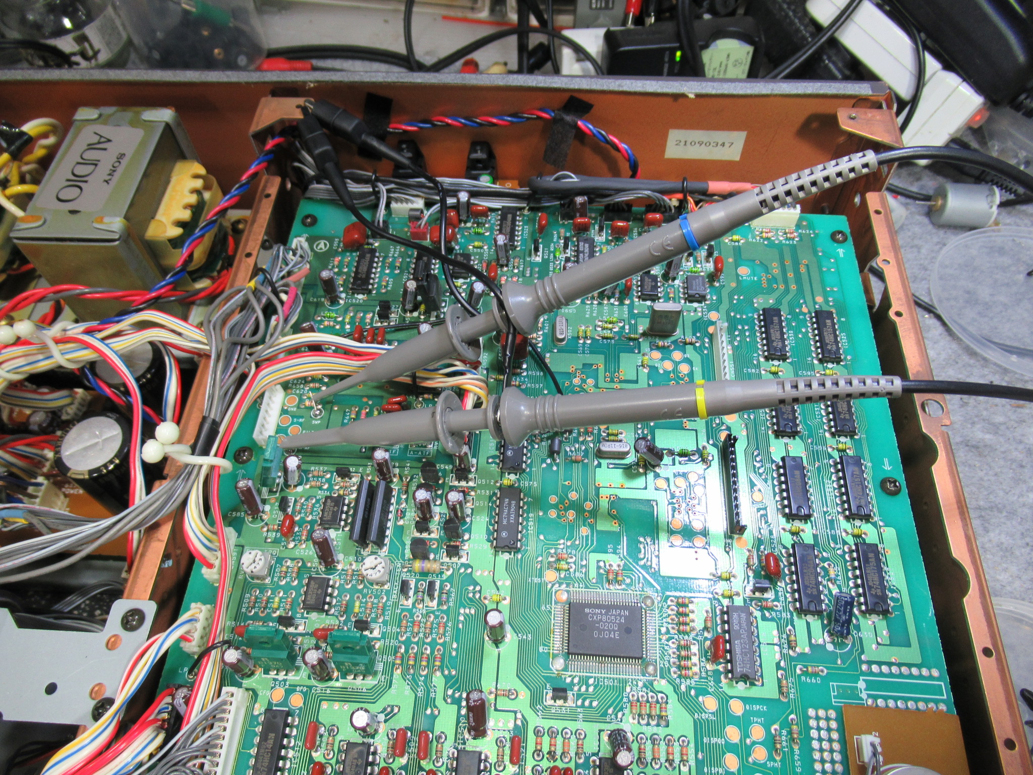 オシロスコープを接続してRFシグナルを点検すると、テープパスの狂いがあることが判明しました。