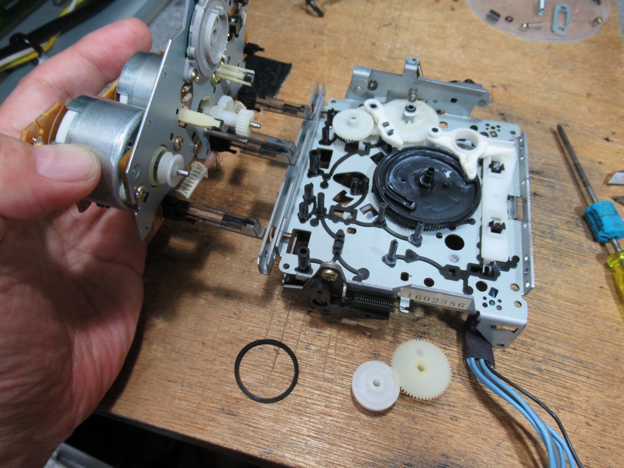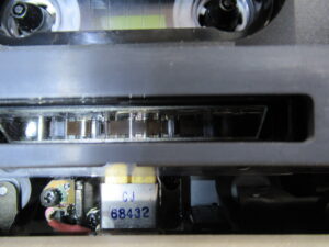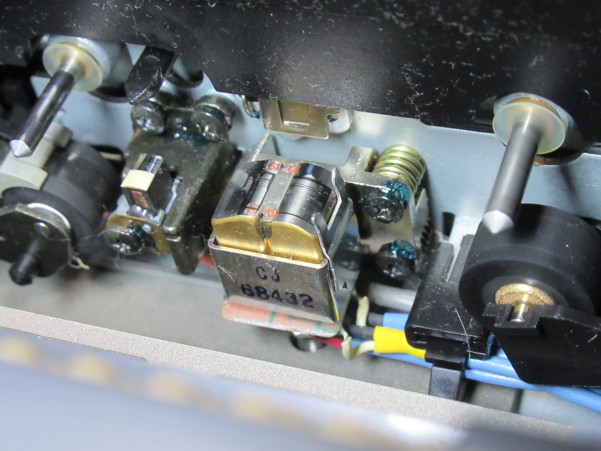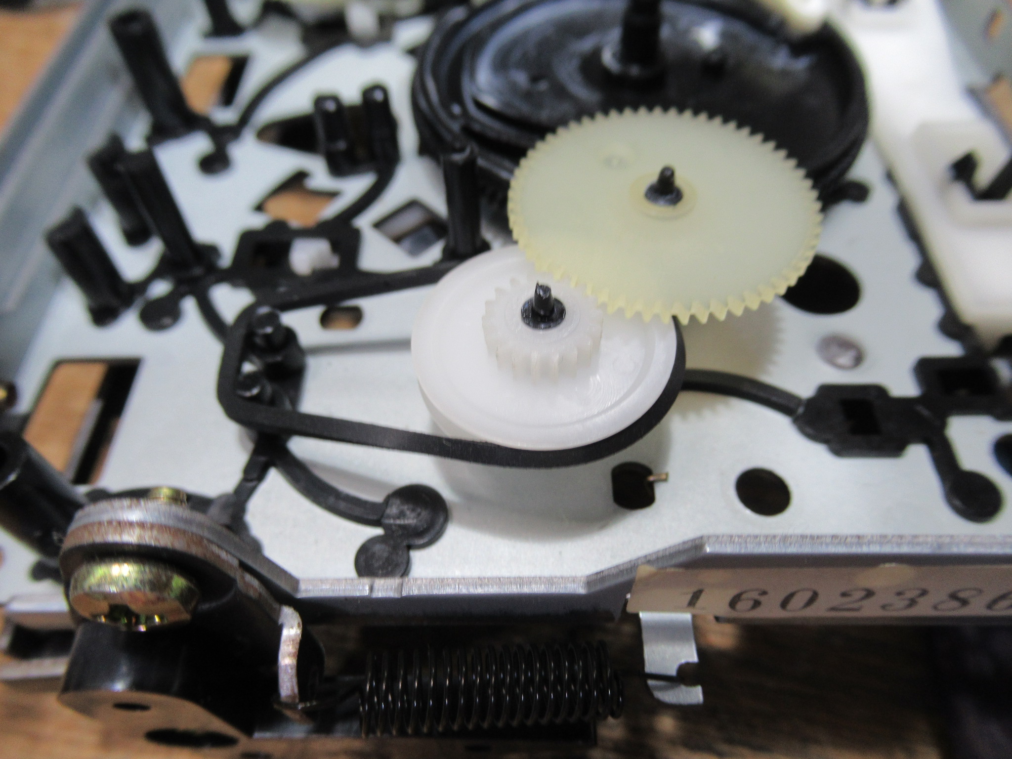 このキャプスタンベルトは、伸びやすいタイプのものです。この頃の機器には、低価格機器の低品質パーツが混入していることがあります。製造工場で何か事情があったと推察されます。