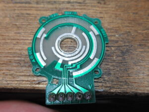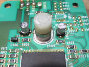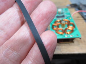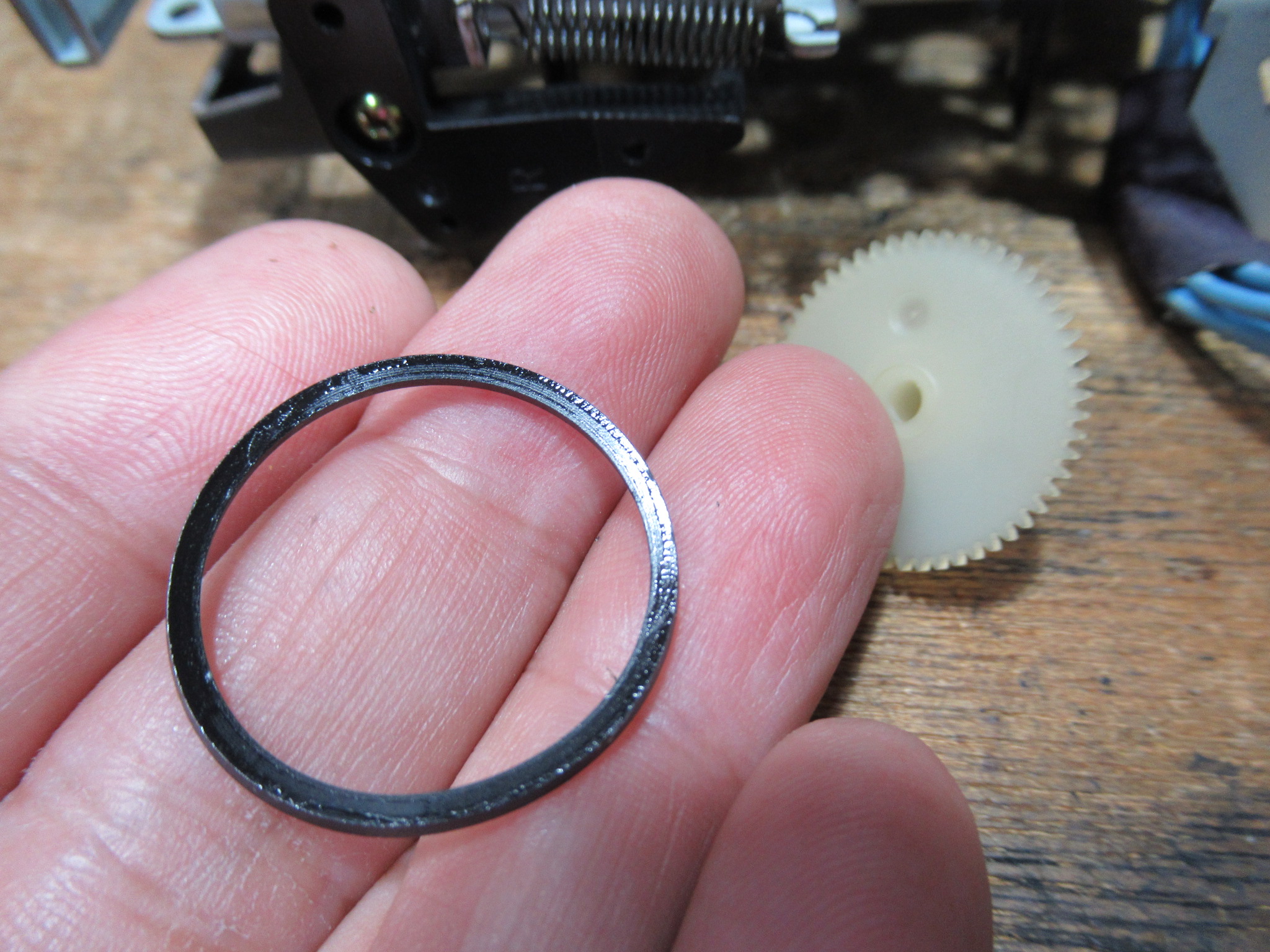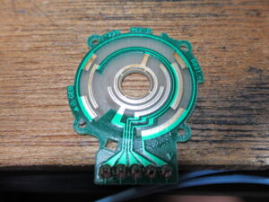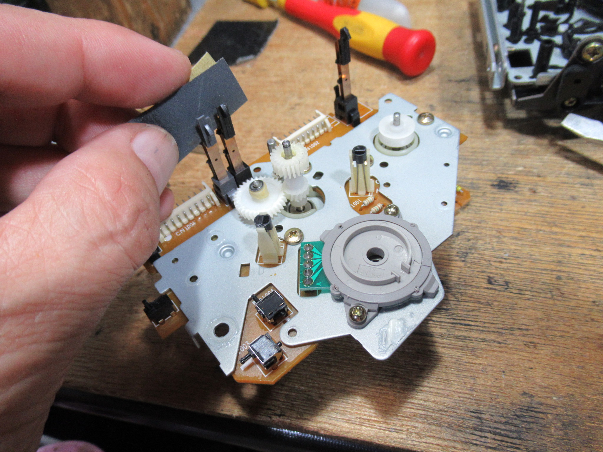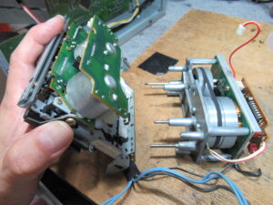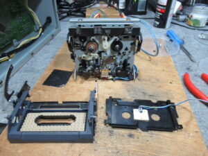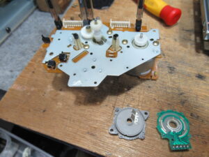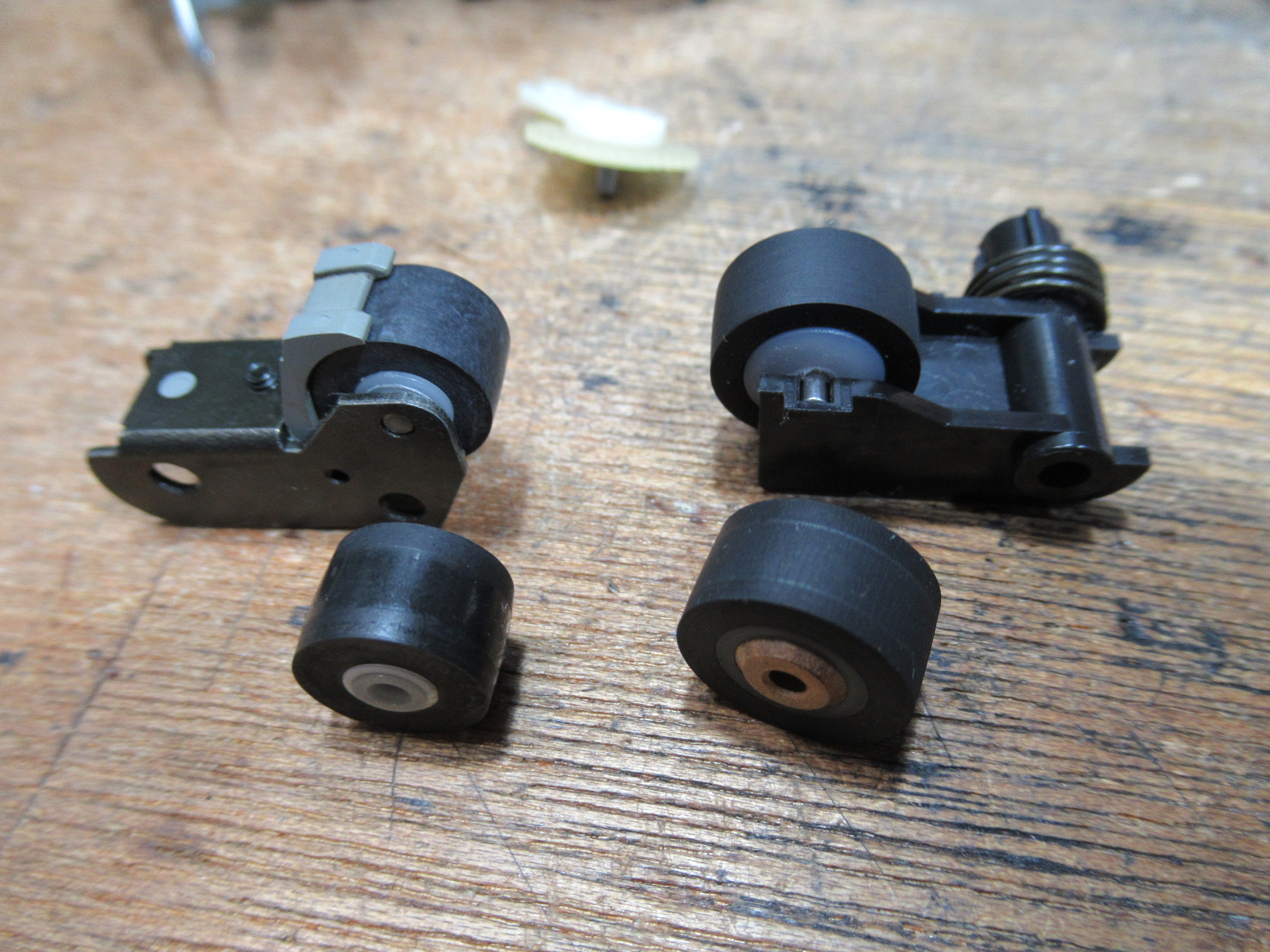 このキャプスタンベルトは、伸びやすいタイプのものです。この頃の機器には、低価格機器の低品質パーツが混入していることがあります。製造工場で何か事情があったと推察されます。