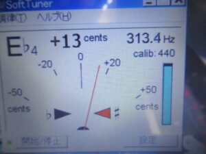 315Hzの信号が記録されたテープを再生し、速度を点検します。やや低くなっていますが、使用上差し支えの無い状態です。