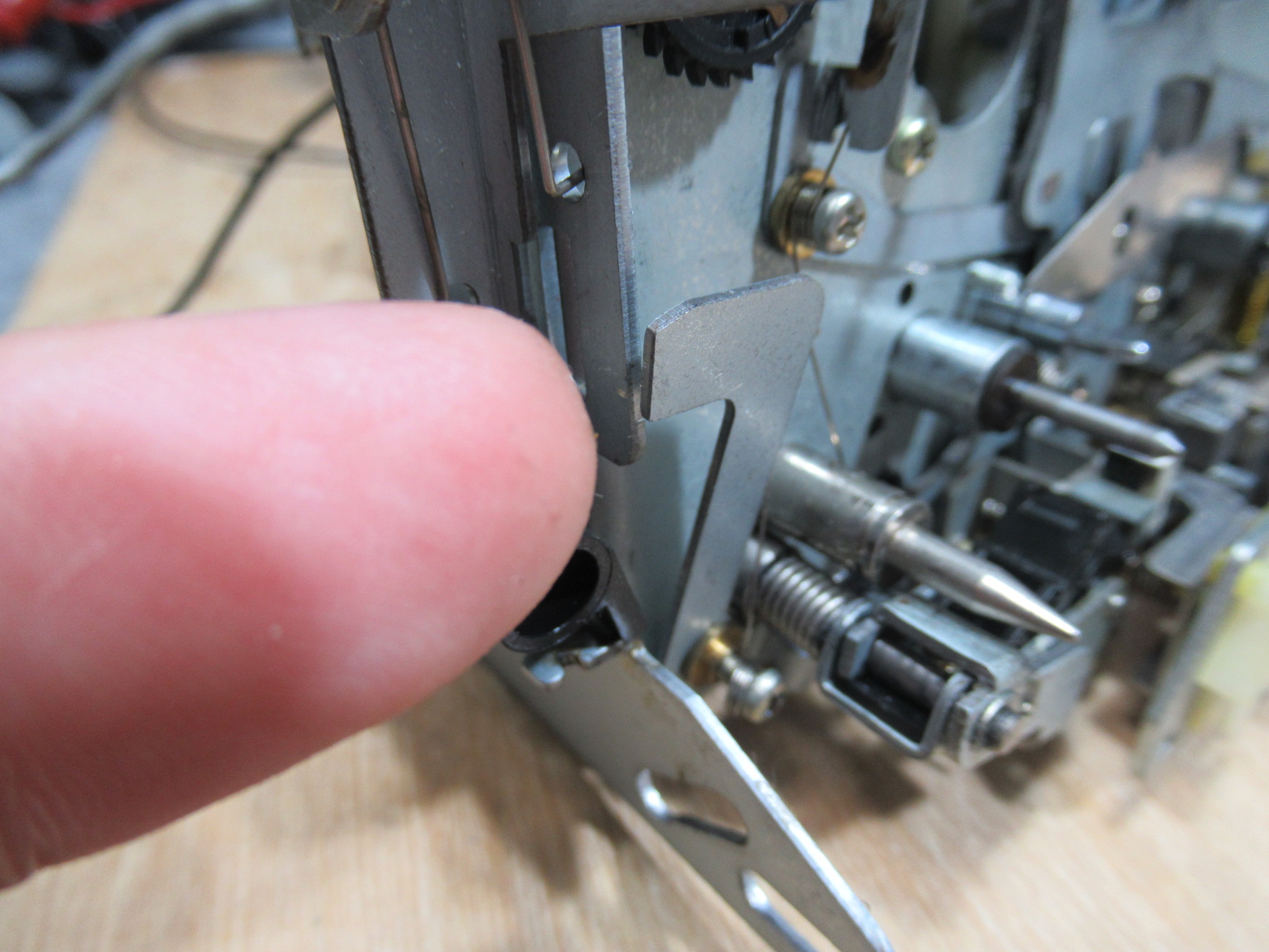 整備ミスです。動作時にトレイをロックするレバーがキチンと取り付けられていません。