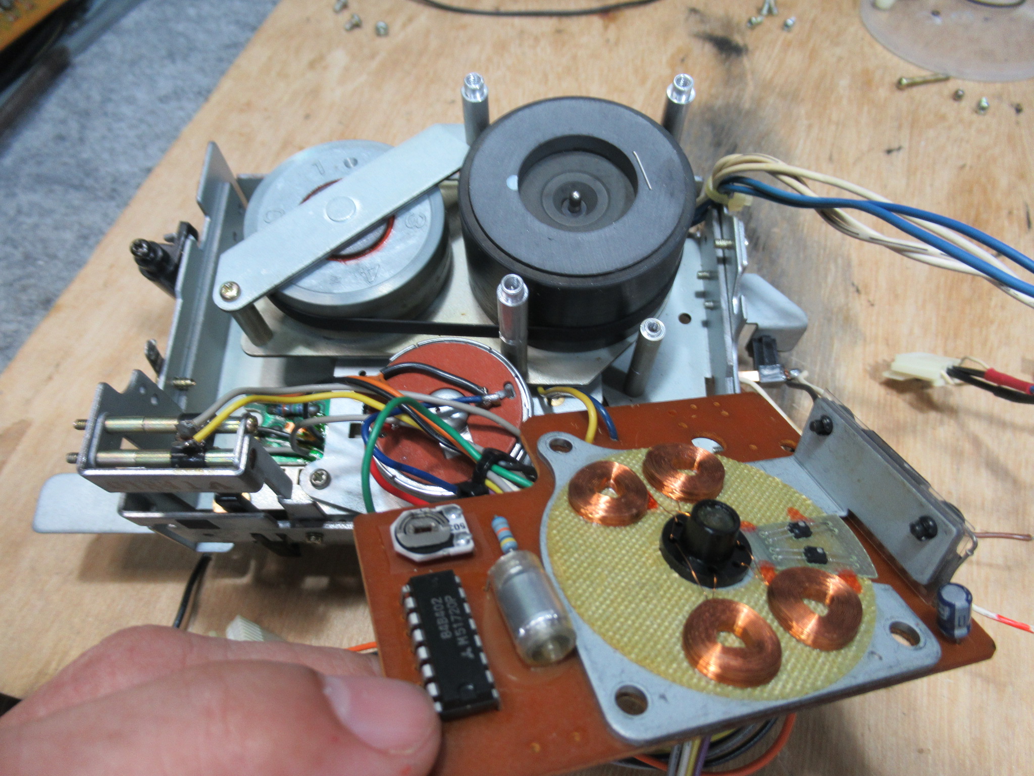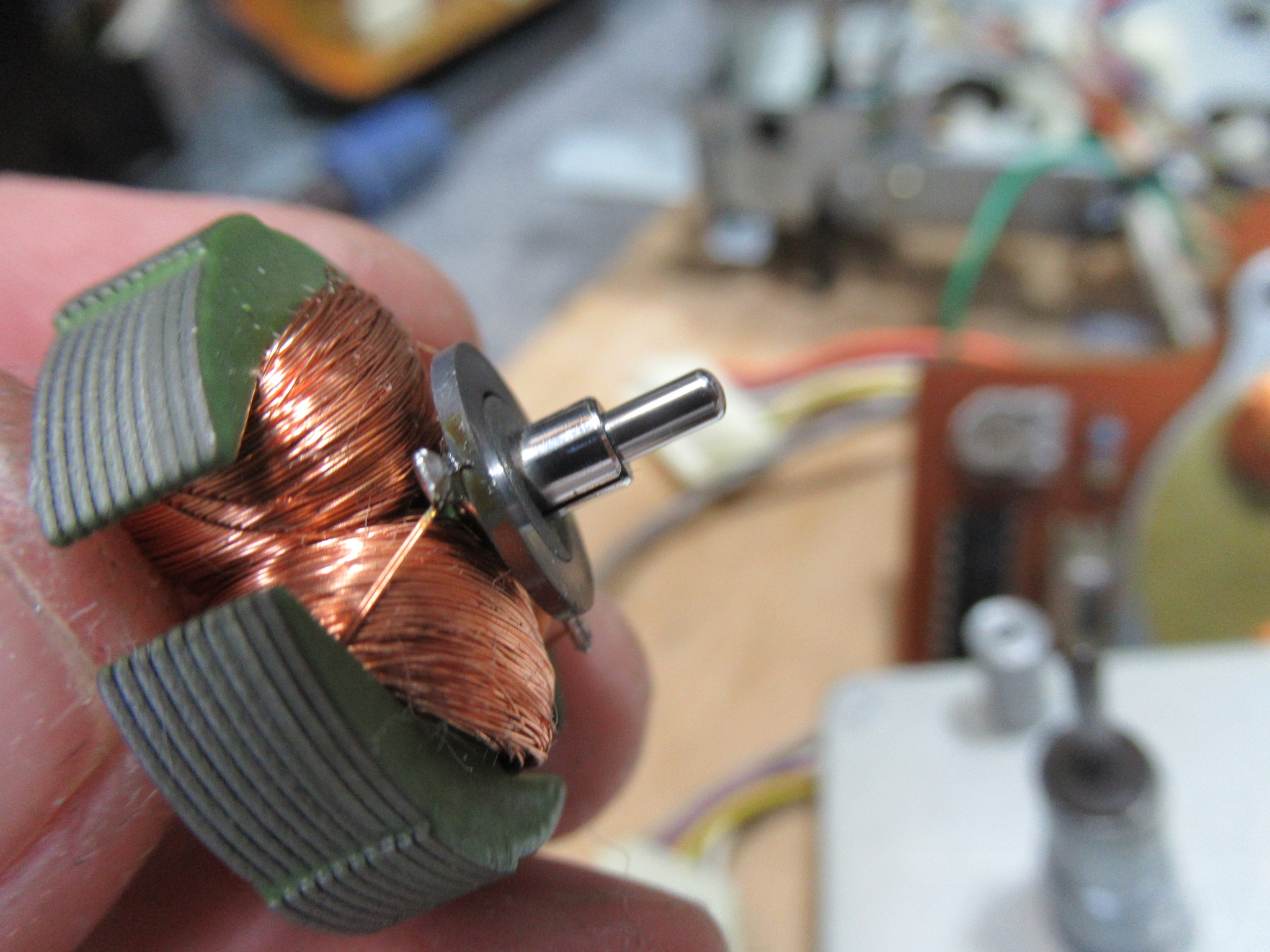 リールモーターを分解し、内部接点を磨きます。