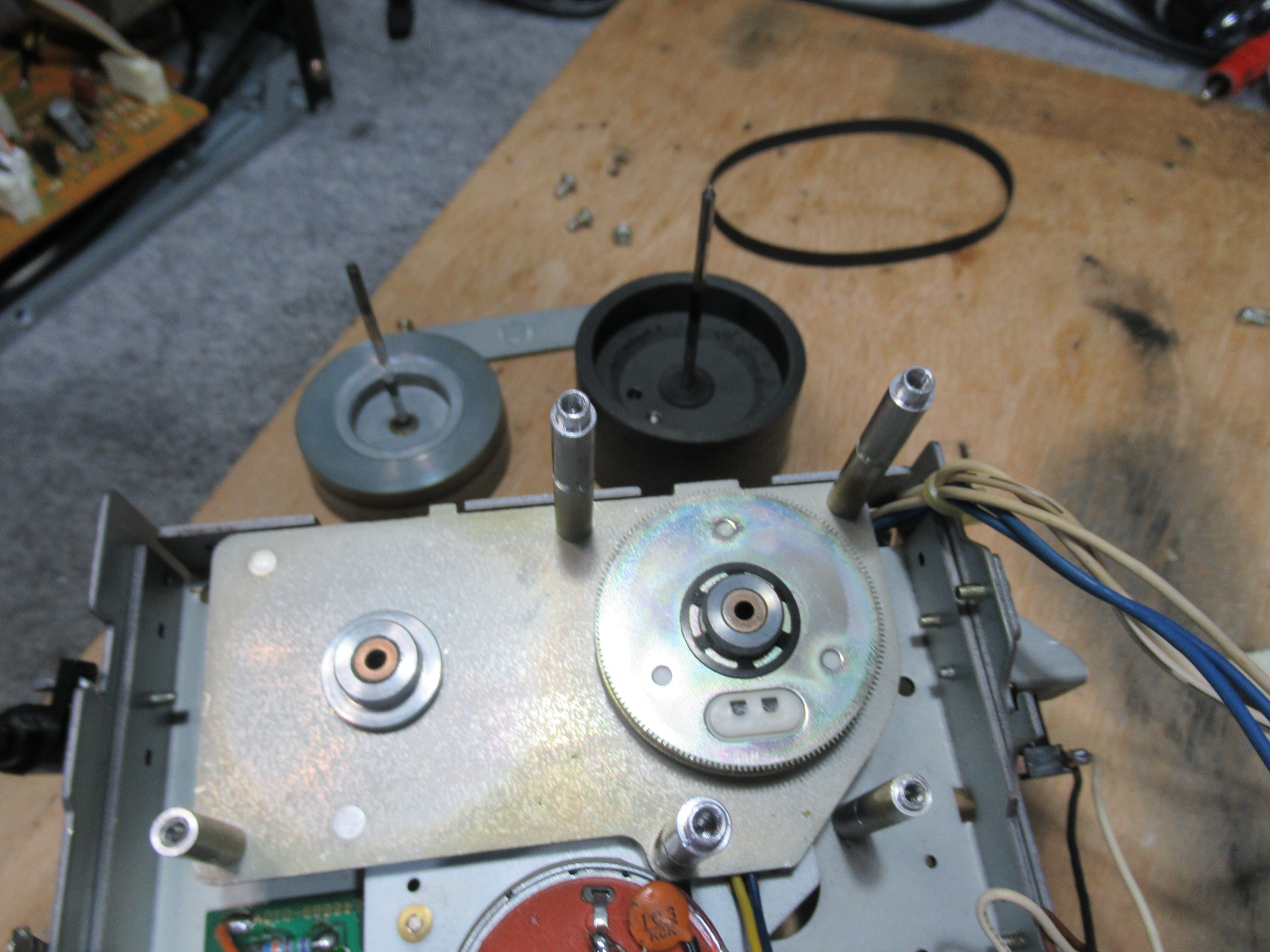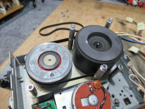 キャプスタンが貫通する部分を清掃し、グリスアップするとともに、ベルトを交換します。