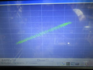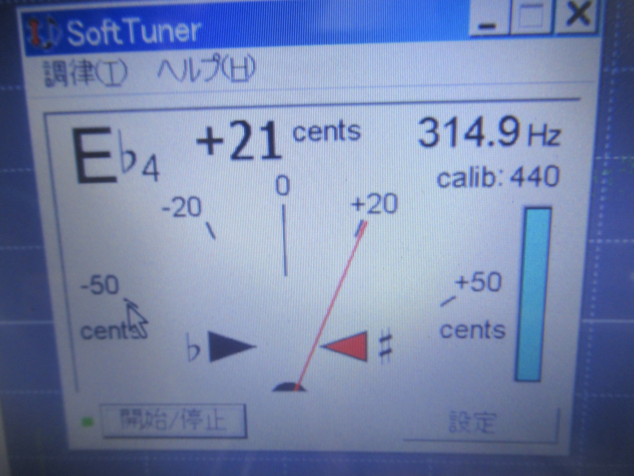 315Hzの信号が記録されたテープを再生し、速度を調整します。315Hz丁度でないのは、数値は僅かに上下しますので、撮影のタイミングによるためです。