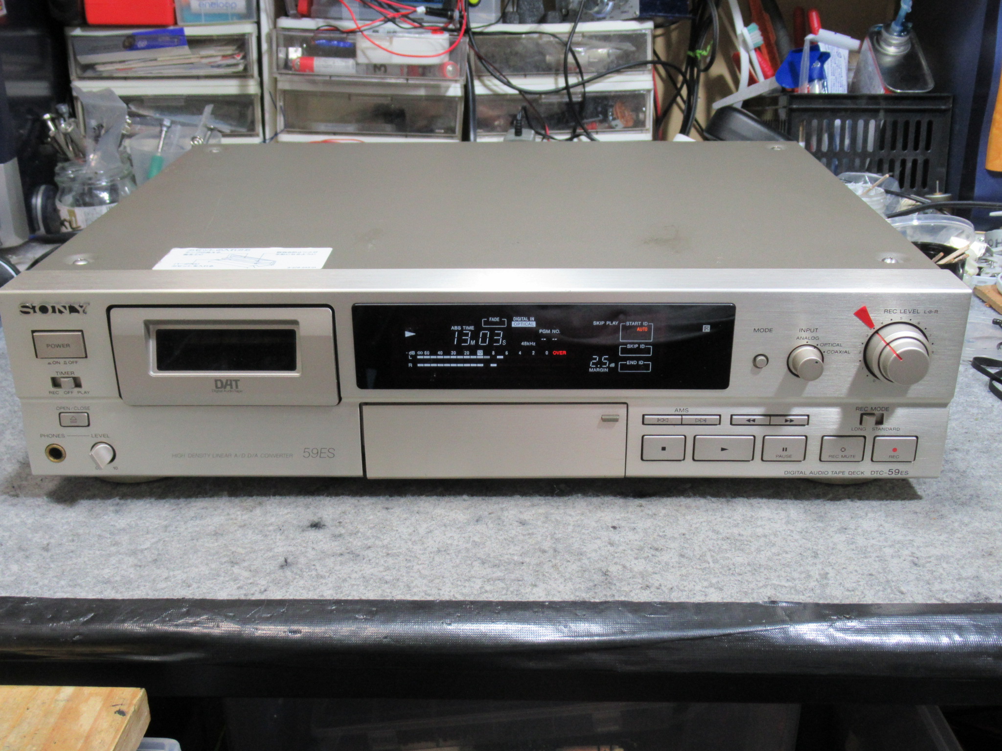 SONY製DATデッキ、DTC-59ESです。ノイズが混じったり、録音再生中に巻き取り側のテープが撓んで停止したり、巻き戻しが最後のほうで力尽きて停止するなどの不具合を抱えています。