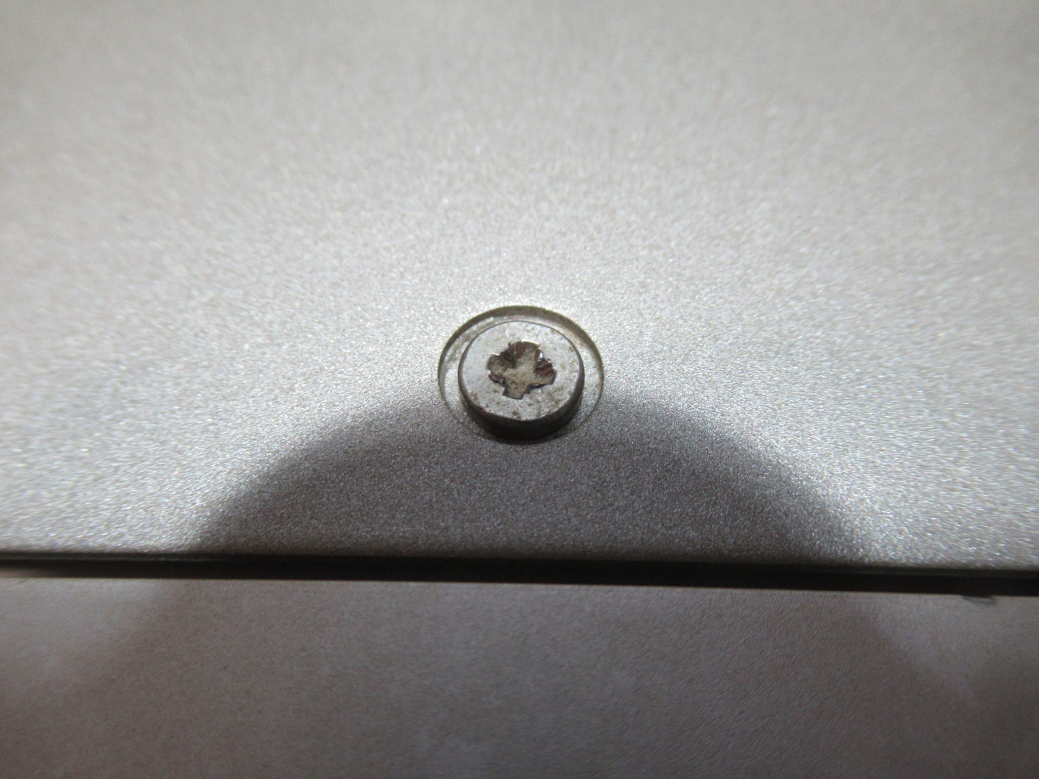 天板を固定しているビスですが、傷みが見られます。この手の柔らかい材質のビスへの電動工具の使用には注意が必要です。
