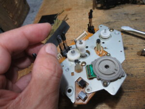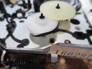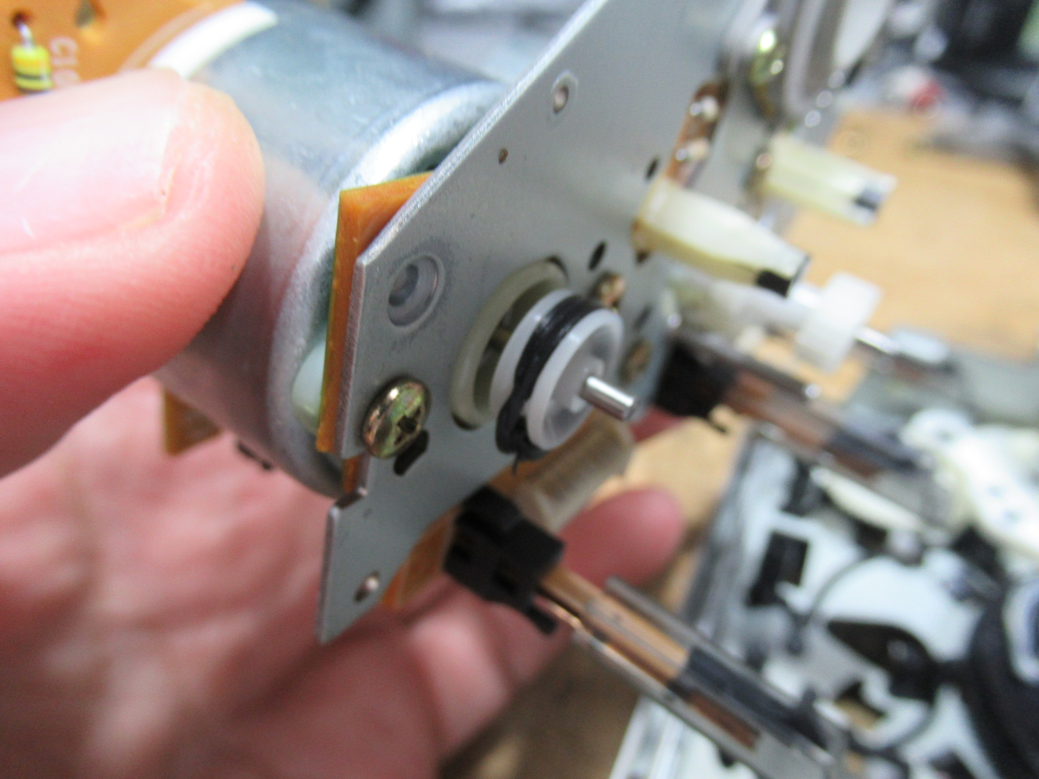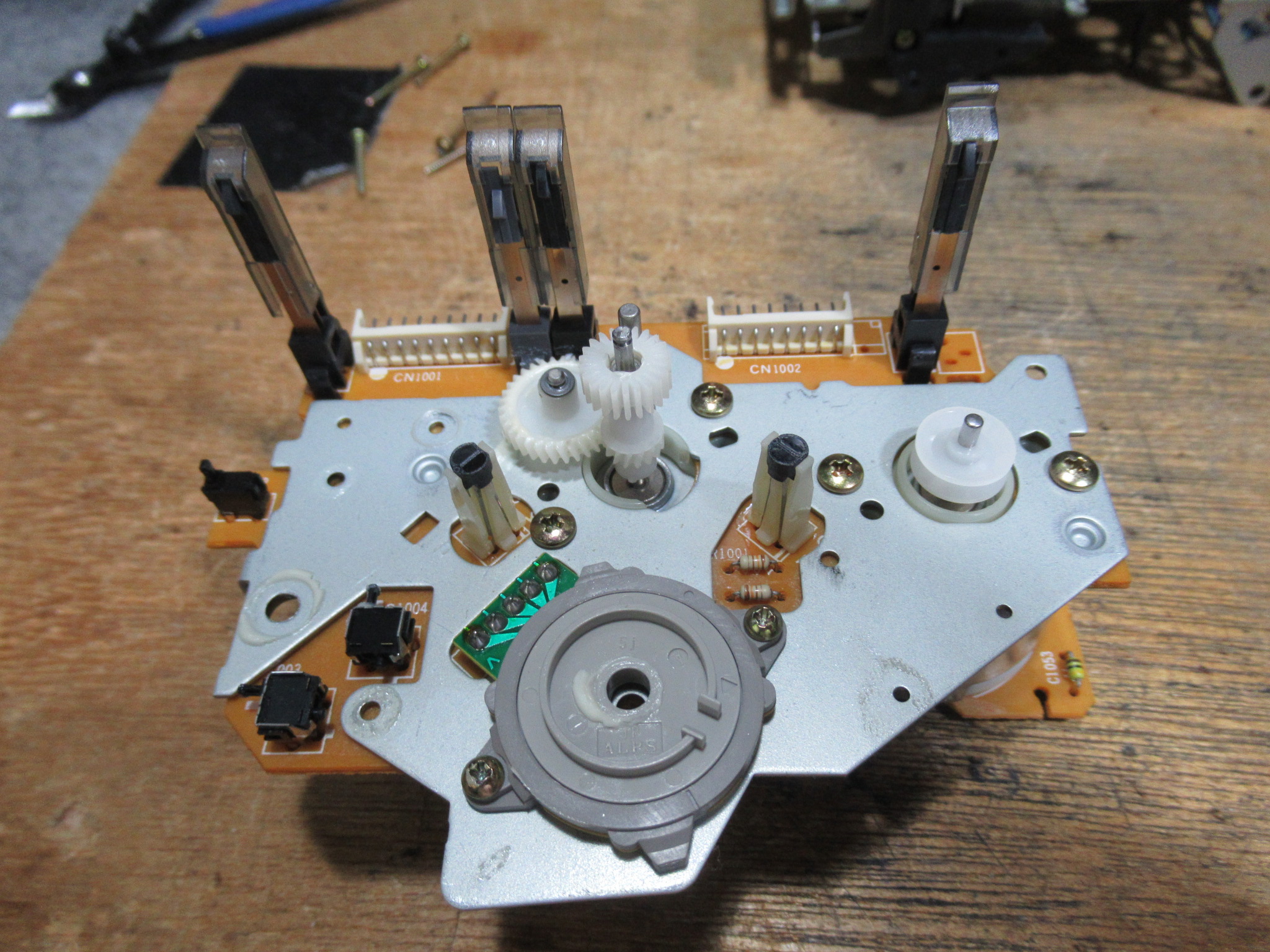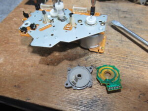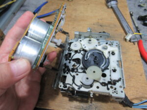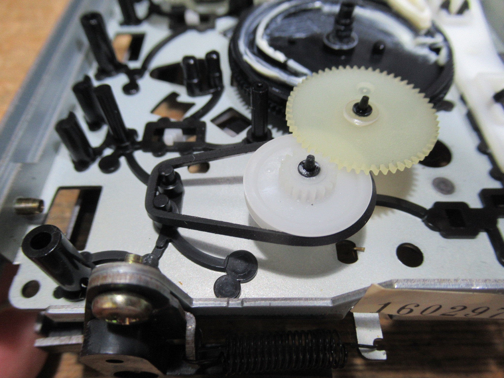 フロント部を分解します。モードベルトが溶けて、プーリーに付着しています。