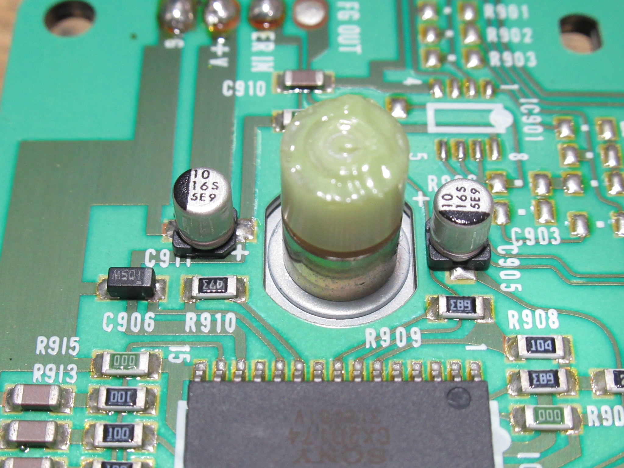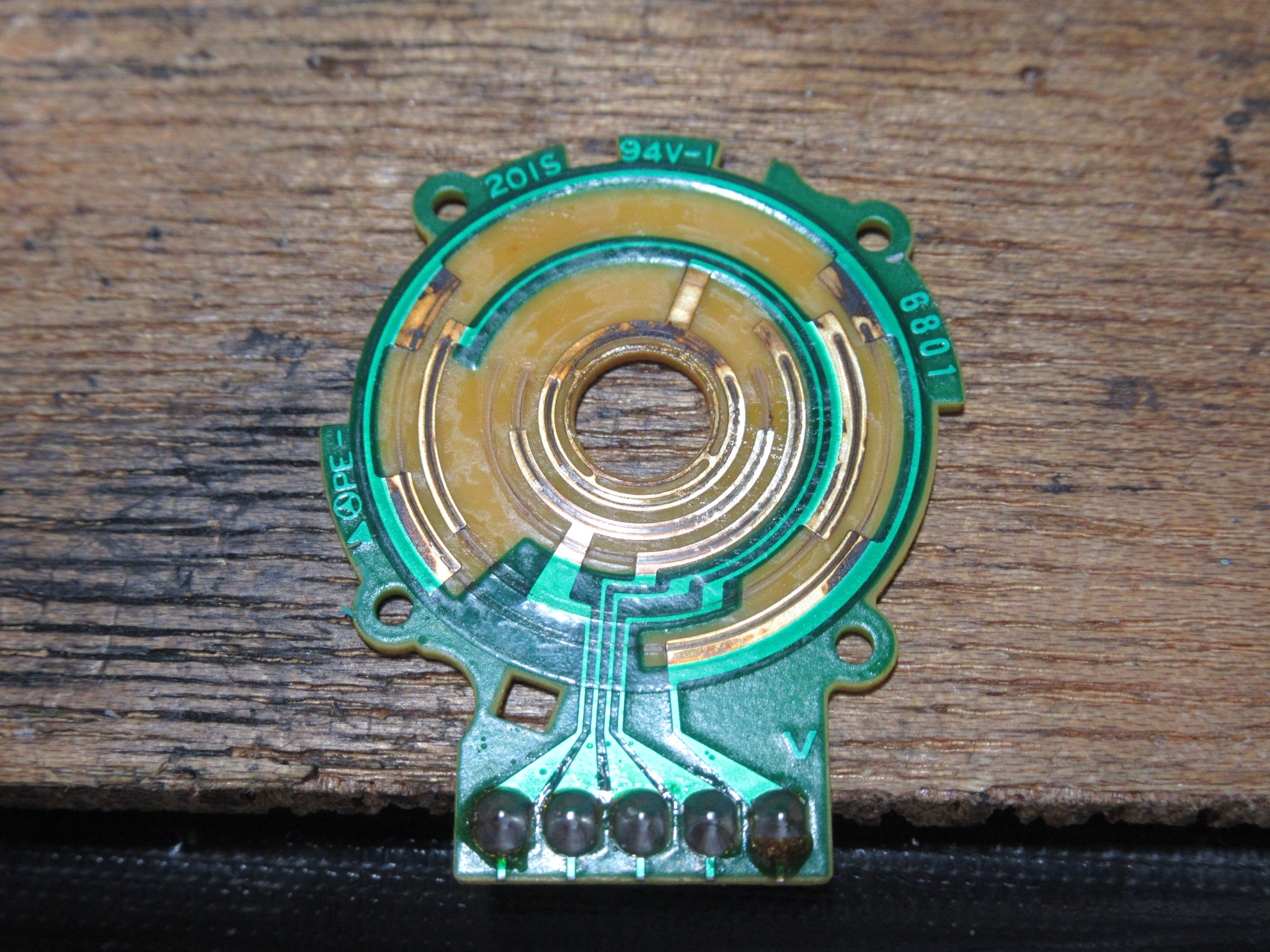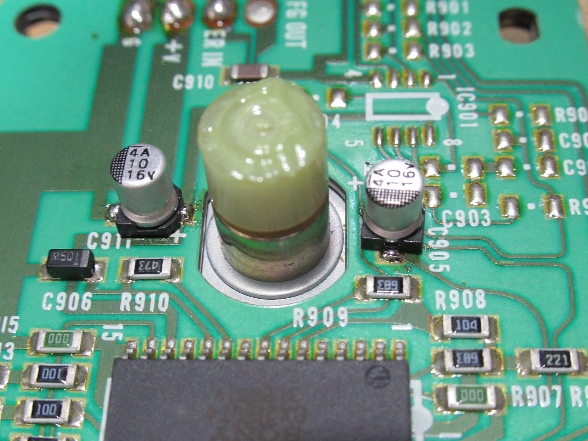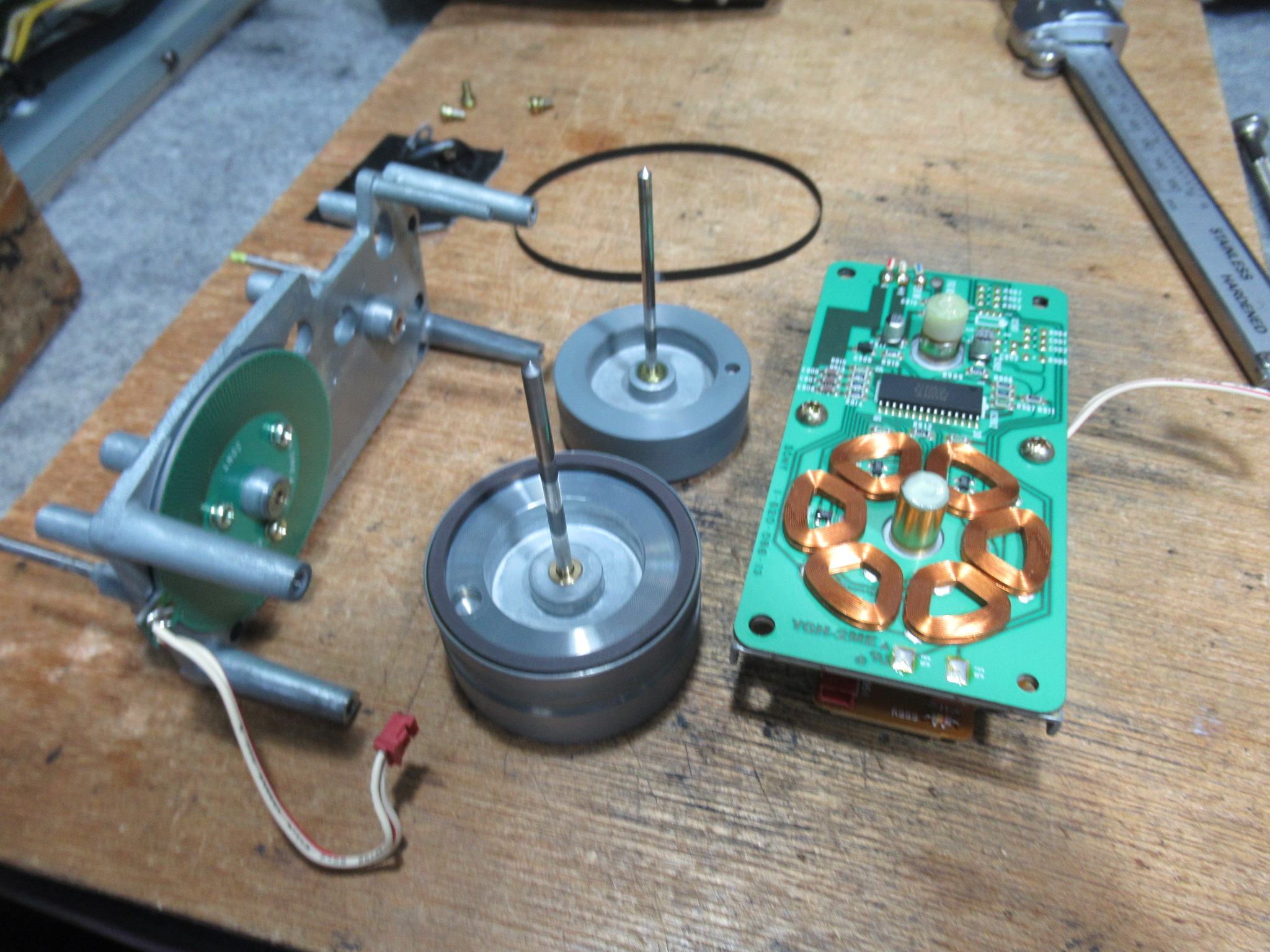 フロント部を分解します。モードベルトが溶けて、プーリーに付着しています。