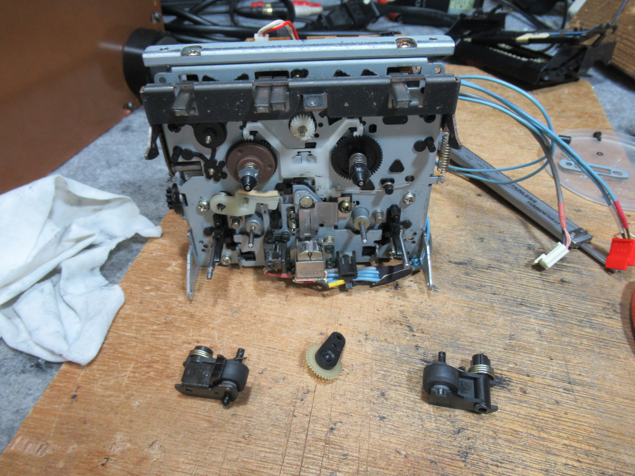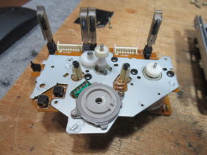 6年ほど前に不動品を入手し他店で整備したという機器ですが、テープを痛めることがあったとのことです。再修理でピンチローラー交換したものの症状が改善されなかったため、当店の出番となりました。カセットデッキの修理は、一般的な修理店では難しいと思います。