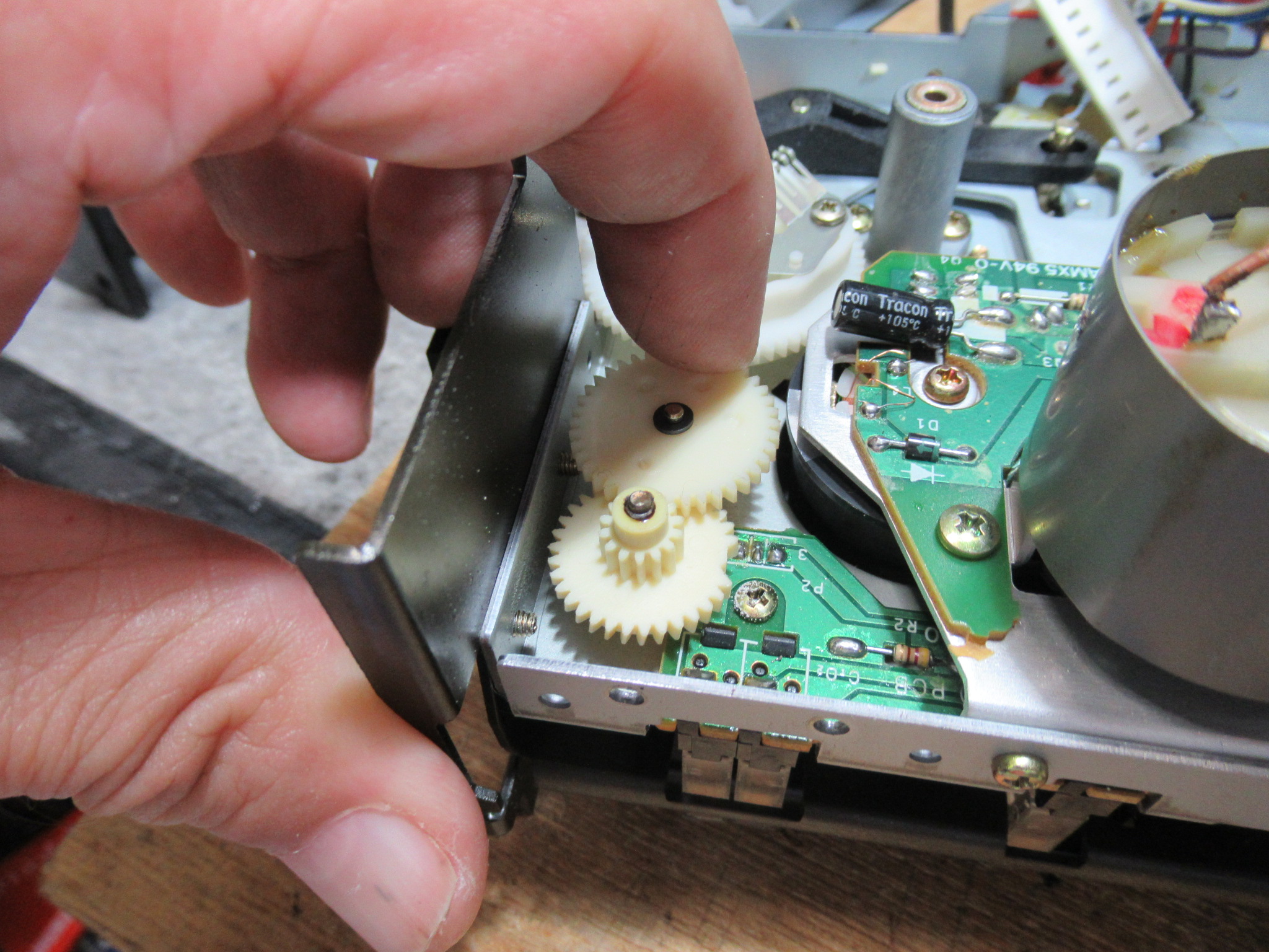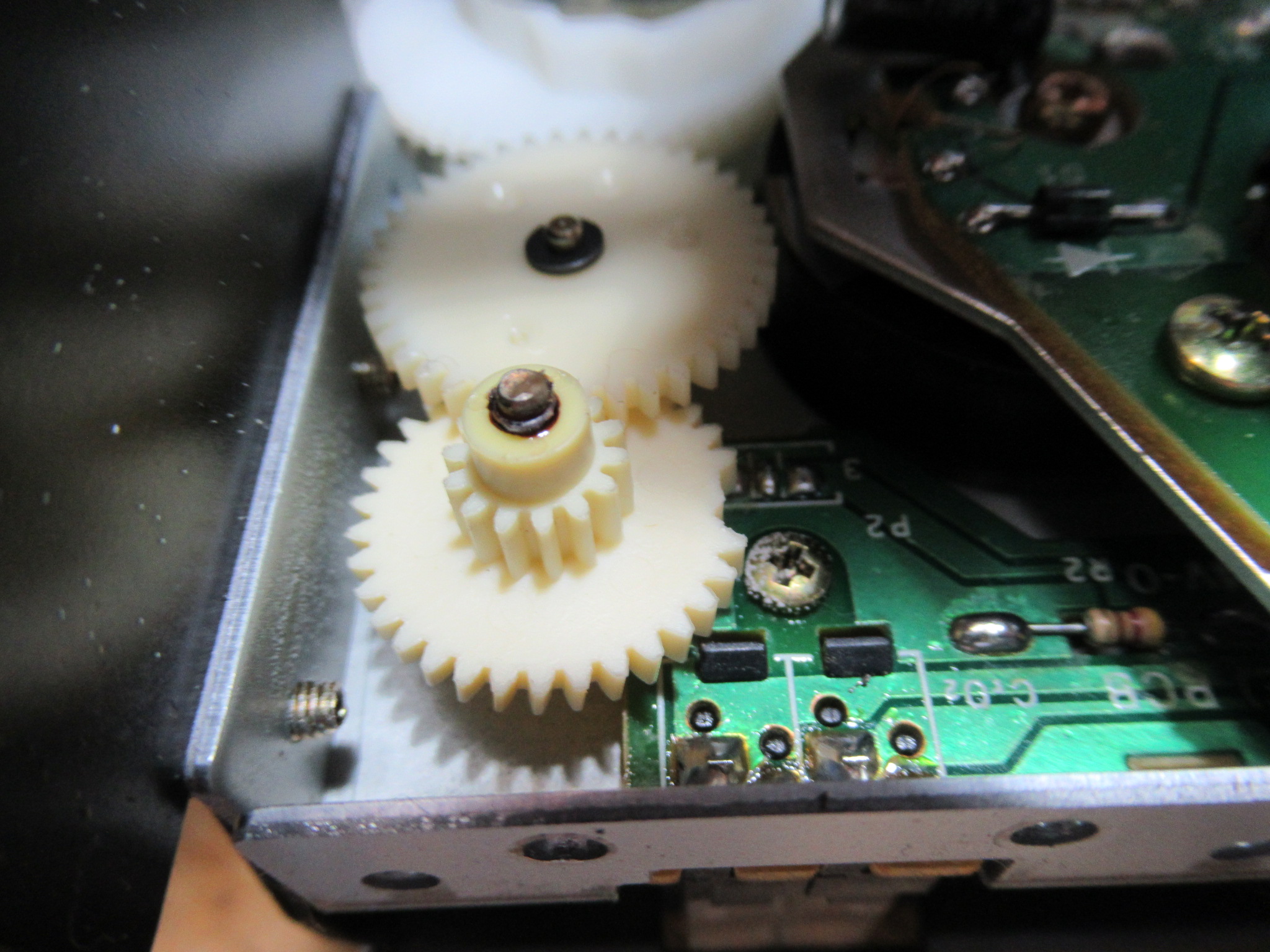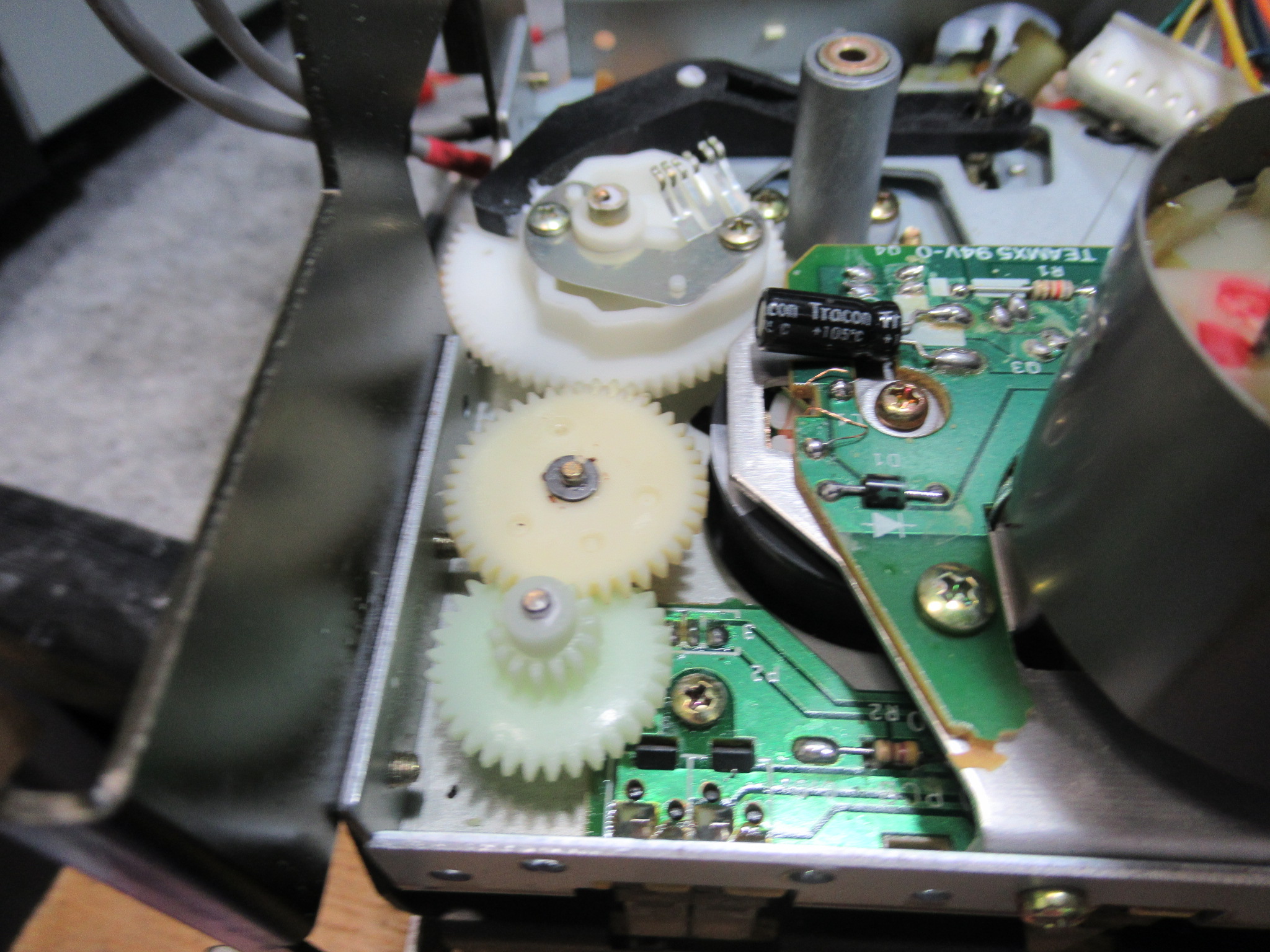 TASCAMの3ヘッドカセットデッキ、112mkⅡ&112RmkⅡでは、カムギヤが破損して不動状態になるという故障が必ず起こります。 一番手前の少し色の付いたギヤの歯が欠けているのがわかると思います。 …