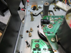 久しぶりにTASCAMの112RmkⅡの修理依頼をいただきました。 精悍なデザインです。 早送り巻き戻しはOKですが、再生できません。 カバーを開けます、メカを取り出すためには、後ろの基板を少し寝かす …