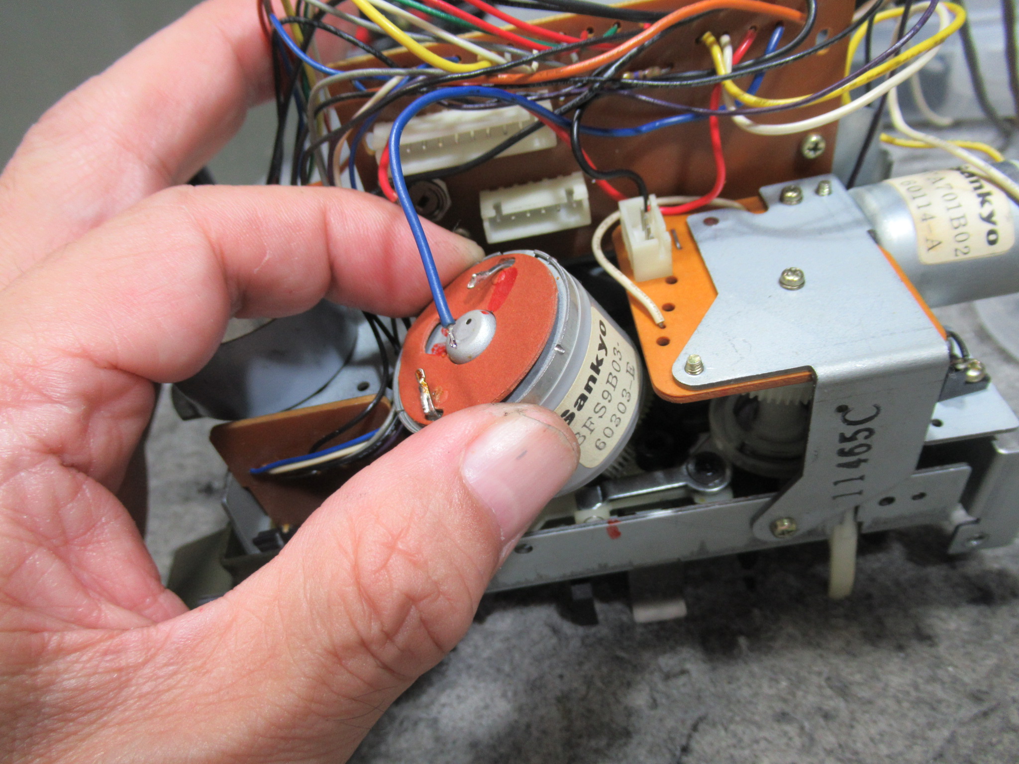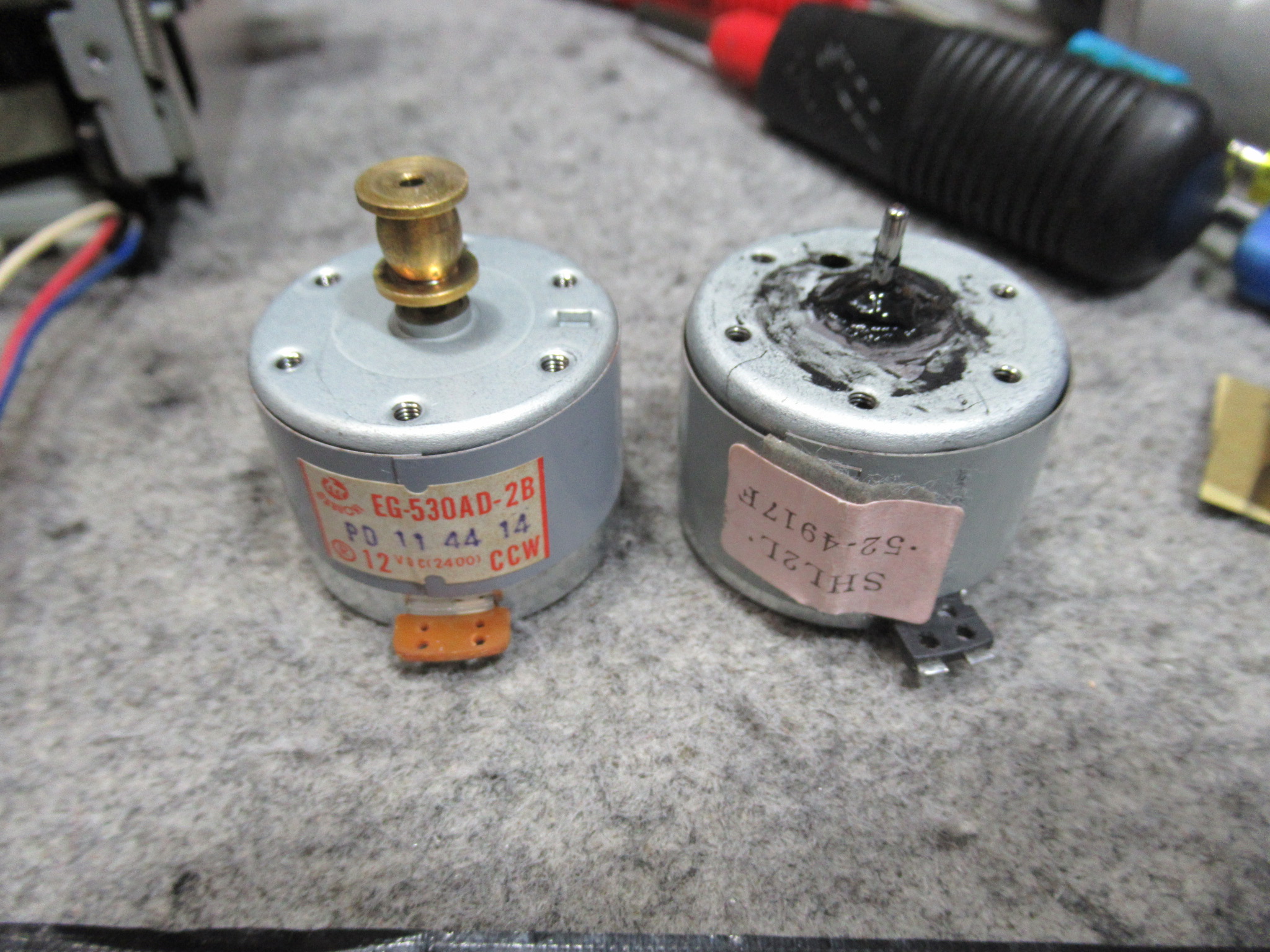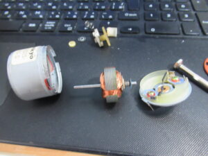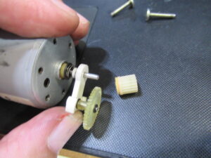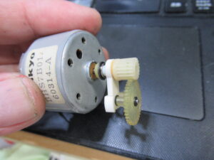 かなり悩みましたが、モーターのギヤの差し込みが緩くなっていましたので接着固定します。