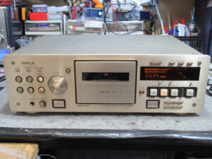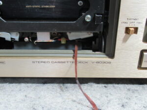 TEAC製3ヘッドデュアルキャプスタンカセットデッキ、V-8030Sですが、再生中にテープを巻き込んでしまったようです。そのため、リッドが開かなくなっています。