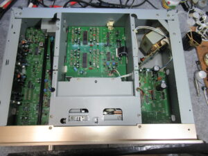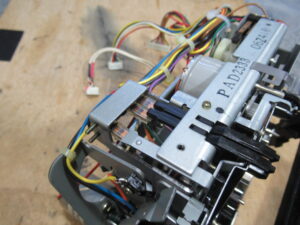カバーを開けて、メカ上部のプレートとフロントの化粧パネルを取り外します。