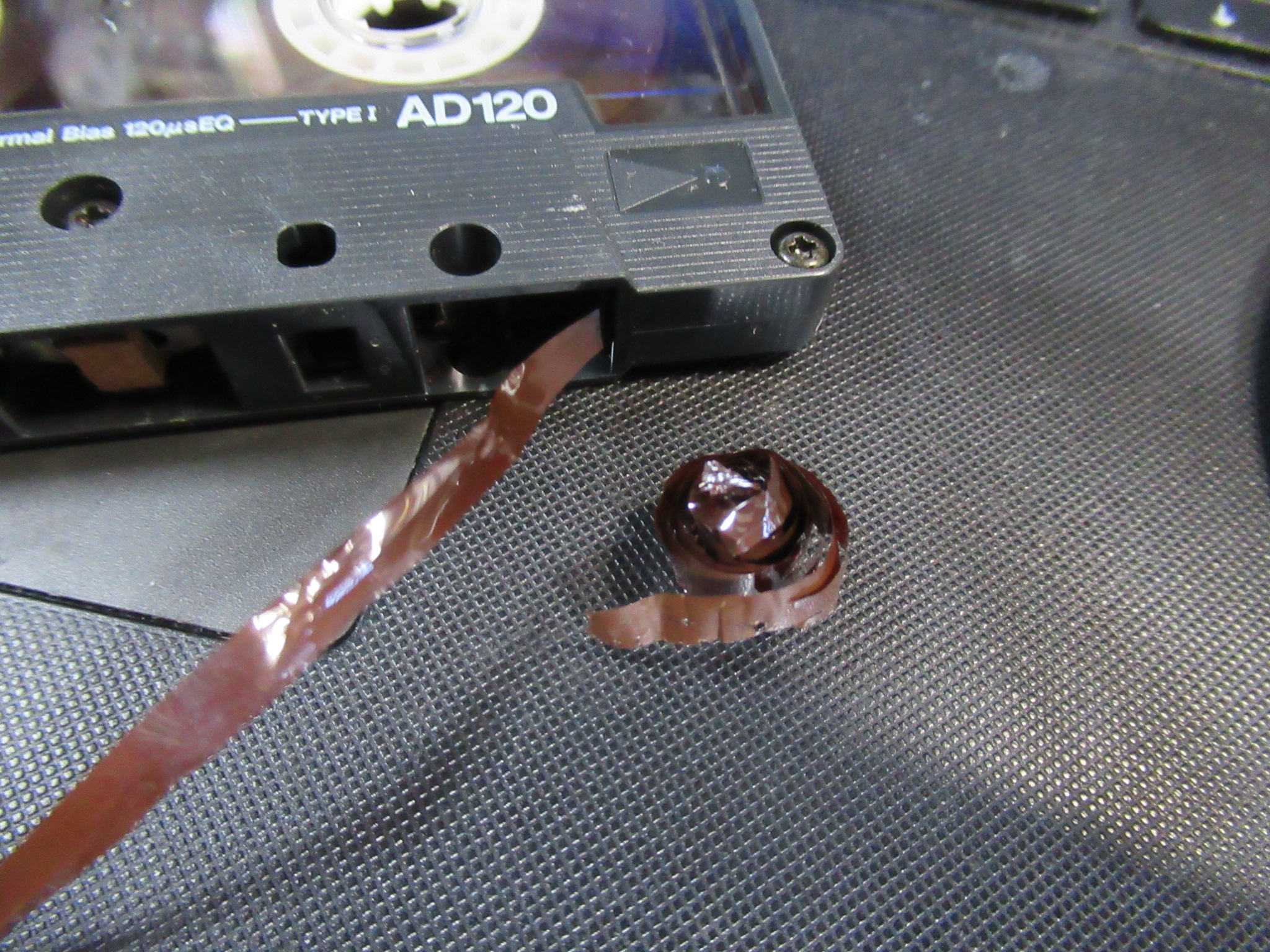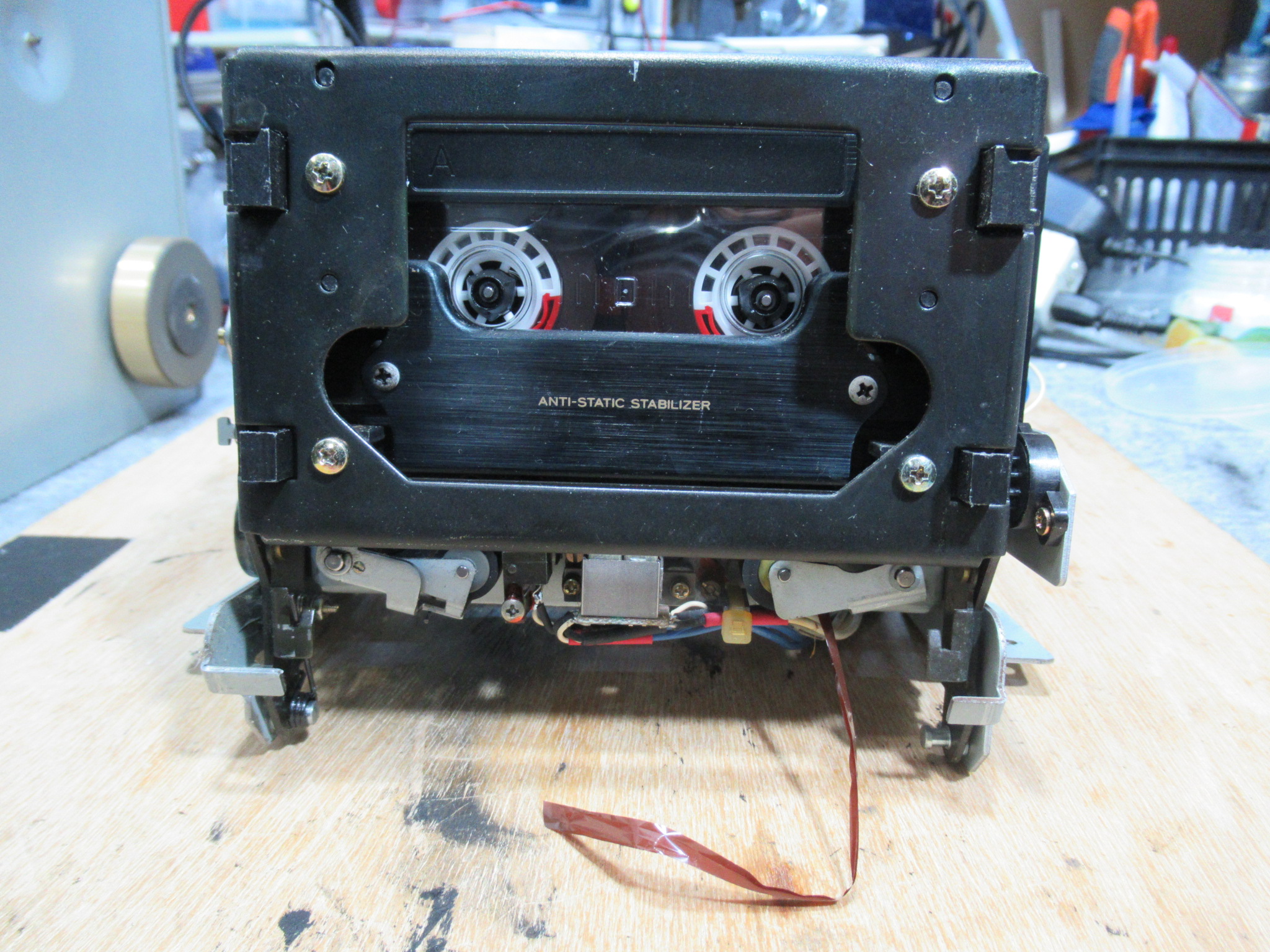 カセットを取り出すことができました。かなりの量のテープがキャプスタンに巻き付いていました。