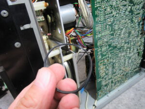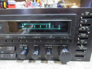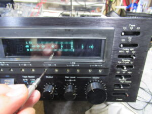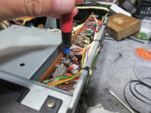 メーターをキャリブレーションに切り替えると、RCHが振り切ります。スイッチの接触不良が原因ですので、接点復活剤を処置します。タイマースイッチやモニター切替スイッチにも接触不良が見られましたので、同様の処置を行い、100%とは言えませんがおおむね改善は見られました。