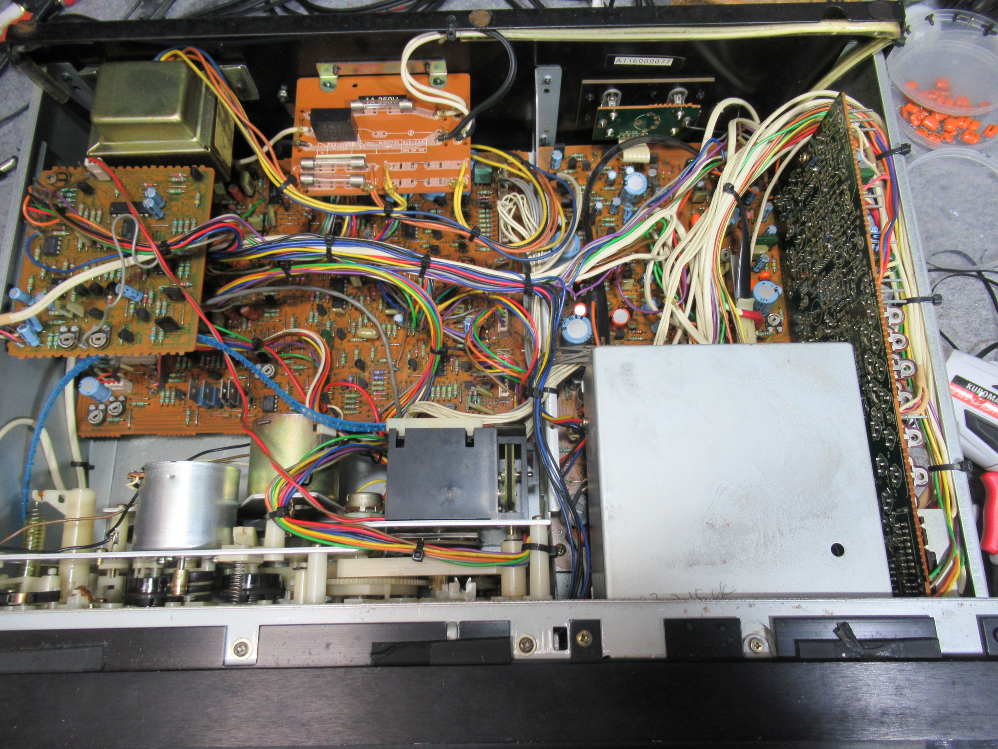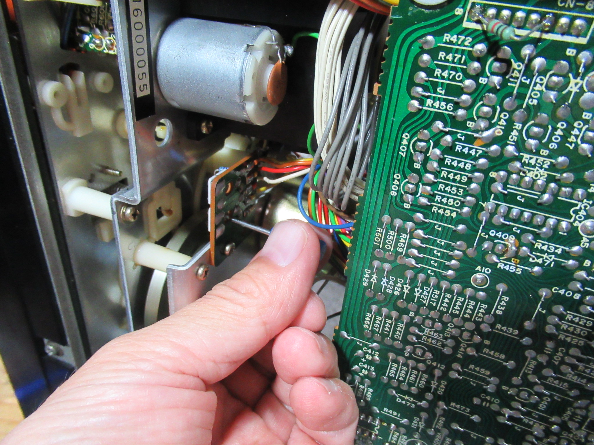 モードベルトがスリップしているため、ヘッドとピンチローラーを最後まで持ち上げることができないようですので、ベルトを交換します。