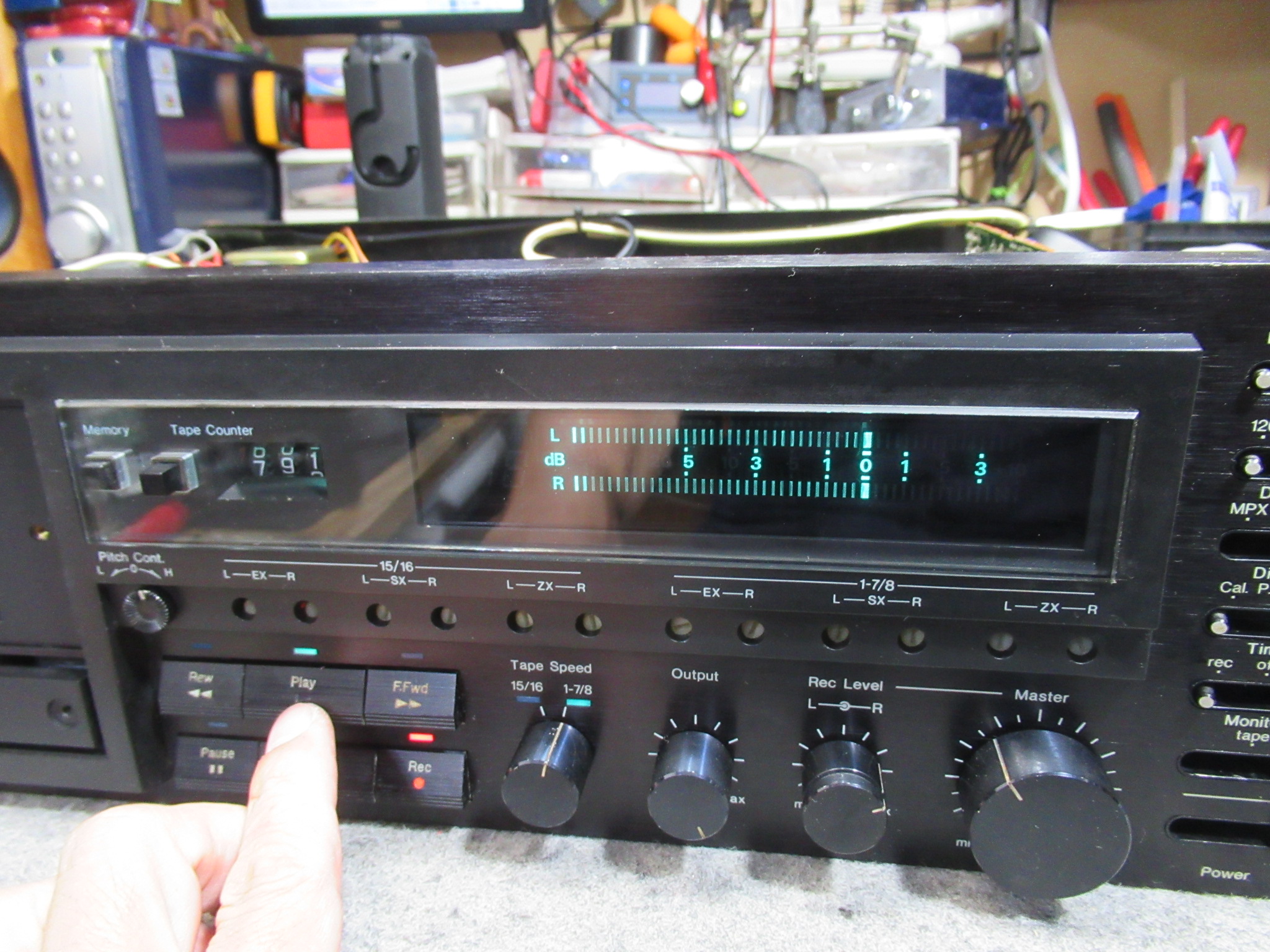 再生を開始しました。音は出ますが、酷い音揺れです。また、再生中も常にコントロールモーターが回転している音が鳴っています。