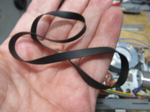 化粧パネルを取り外します。バックテンションベルトが無くなっています。このままでは走行が不安定になり、テープを痛めることがあります。