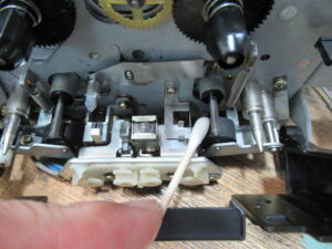 ホルダー開閉を検知するスイッチ接点を磨きます。